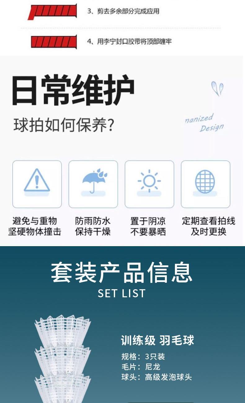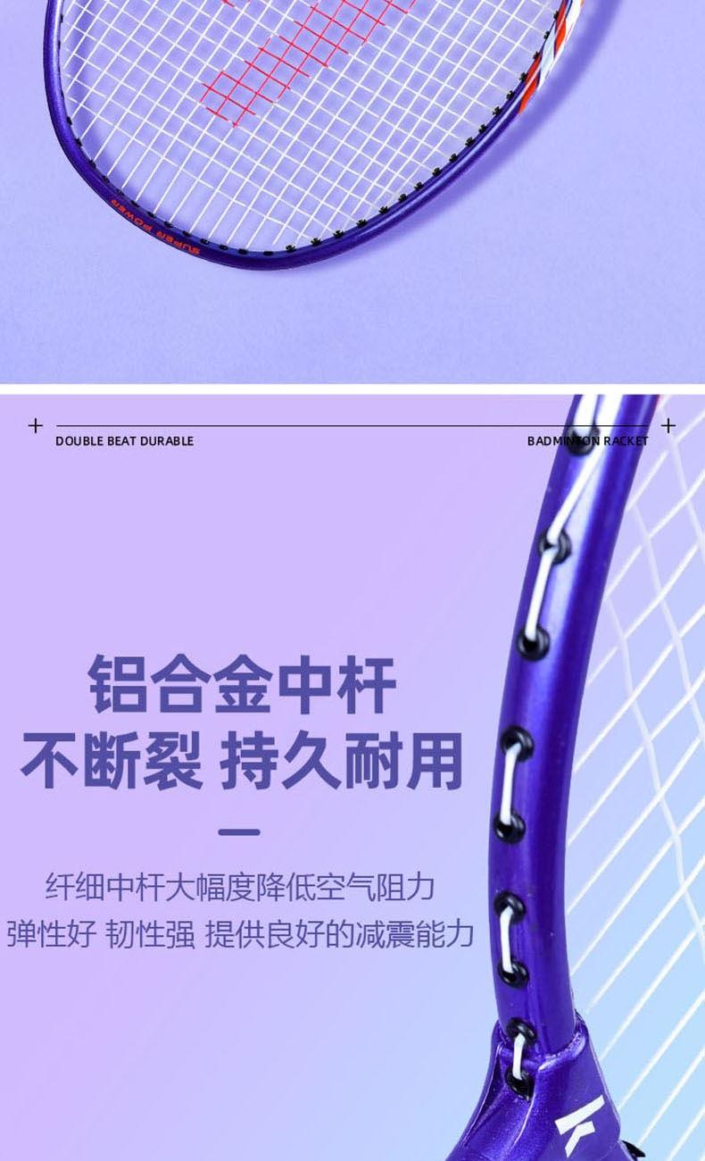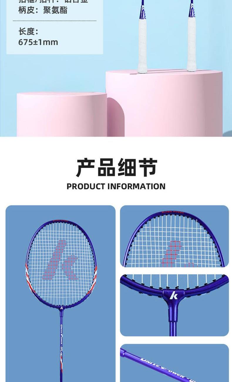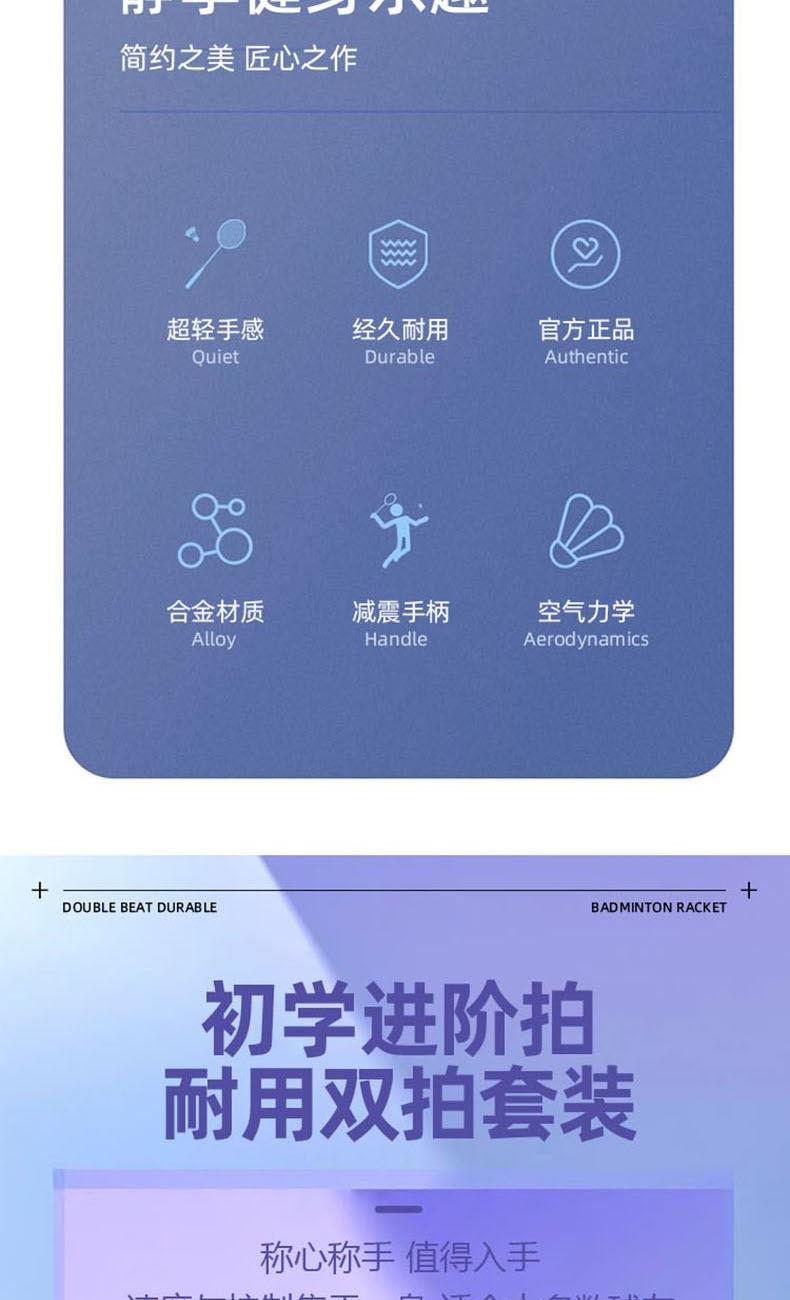 材質(zhì):拍框/拍桿:鋁合金 柄皮:聚氨酯 長度:675±1mm 產(chǎn)品尺寸:71*2*23cm 包裝尺寸:75cm*7cm*27cm 羽毛球拍*2 羽毛球拍拍套*1 9A超級耐打球*3 運(yùn)動護(hù)腕*1 運(yùn)動浴巾*1 髕骨帶*1 彈力帶*1 頭帶*1 運(yùn)動中襪*1 黃色禮盒*1 1.入門級推薦,攻守兩用,耐打,易上手 2.高科技拍框,手感輕盈,高磅拉力不變形 3.一體成型技術(shù)接頭,更好的控制球拍 4.高彈性中桿,韌性強(qiáng)勁有力,反彈更省臂力 5.舒適防滑手柄,手感舒適不震手,吸汗防滑