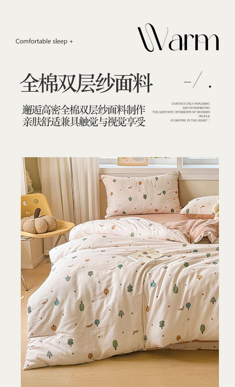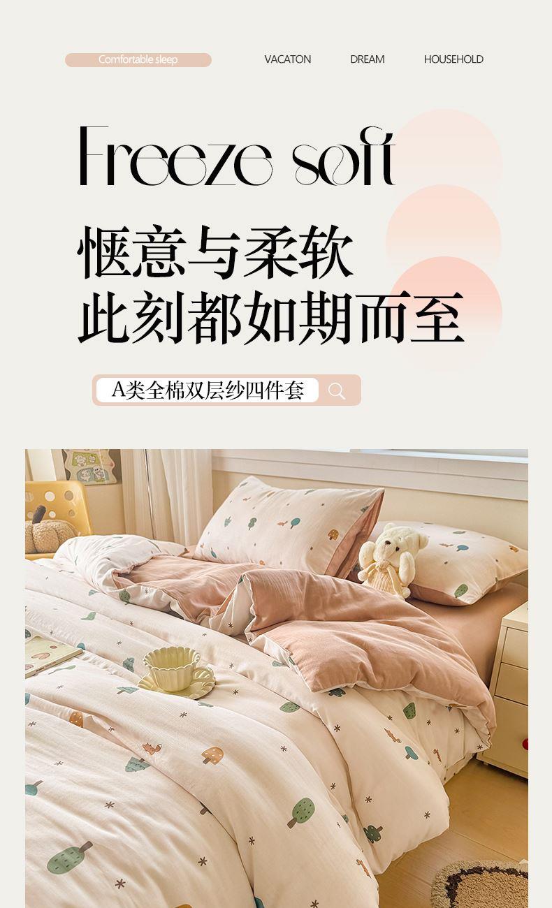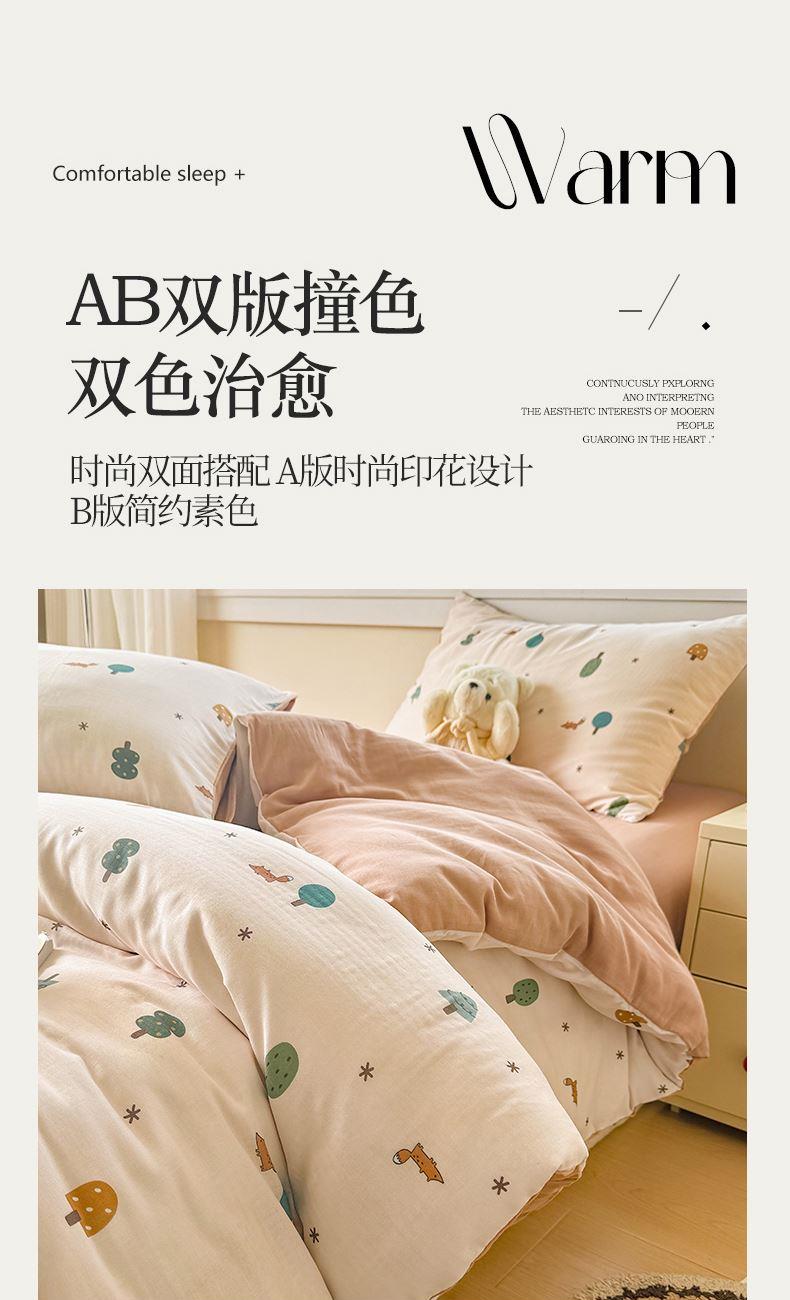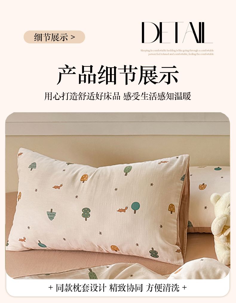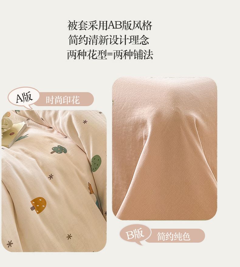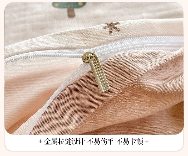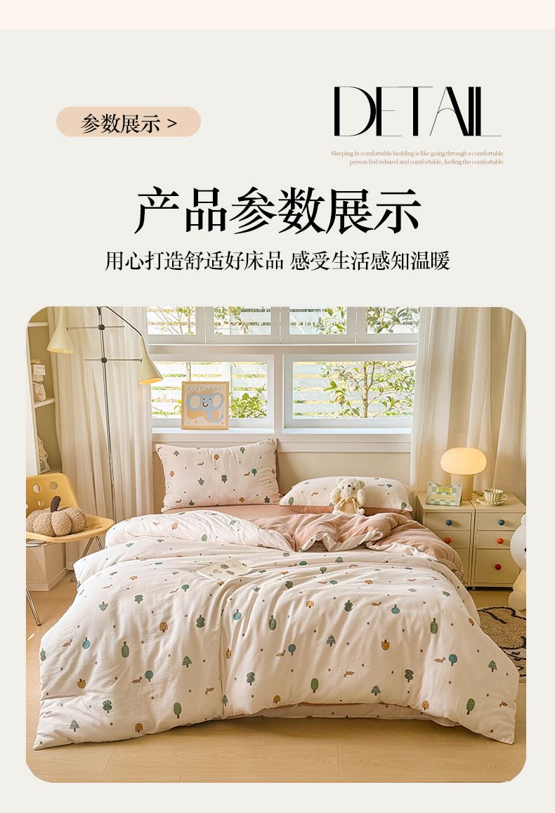 被套:200×230cm 床單:245×245cm 枕套:48×74cm 適用:1.5M-1.8M床 面料:雙層紗(棉) 棉雙層紗面料 邂逅高密全棉雙層紗面料制作親膚舒適兼具觸覺(jué)與視覺(jué)享受,有良好的透氣性、吸濕性時(shí)刻擁有春風(fēng)徐徐般的柔軟體驗(yàn)。