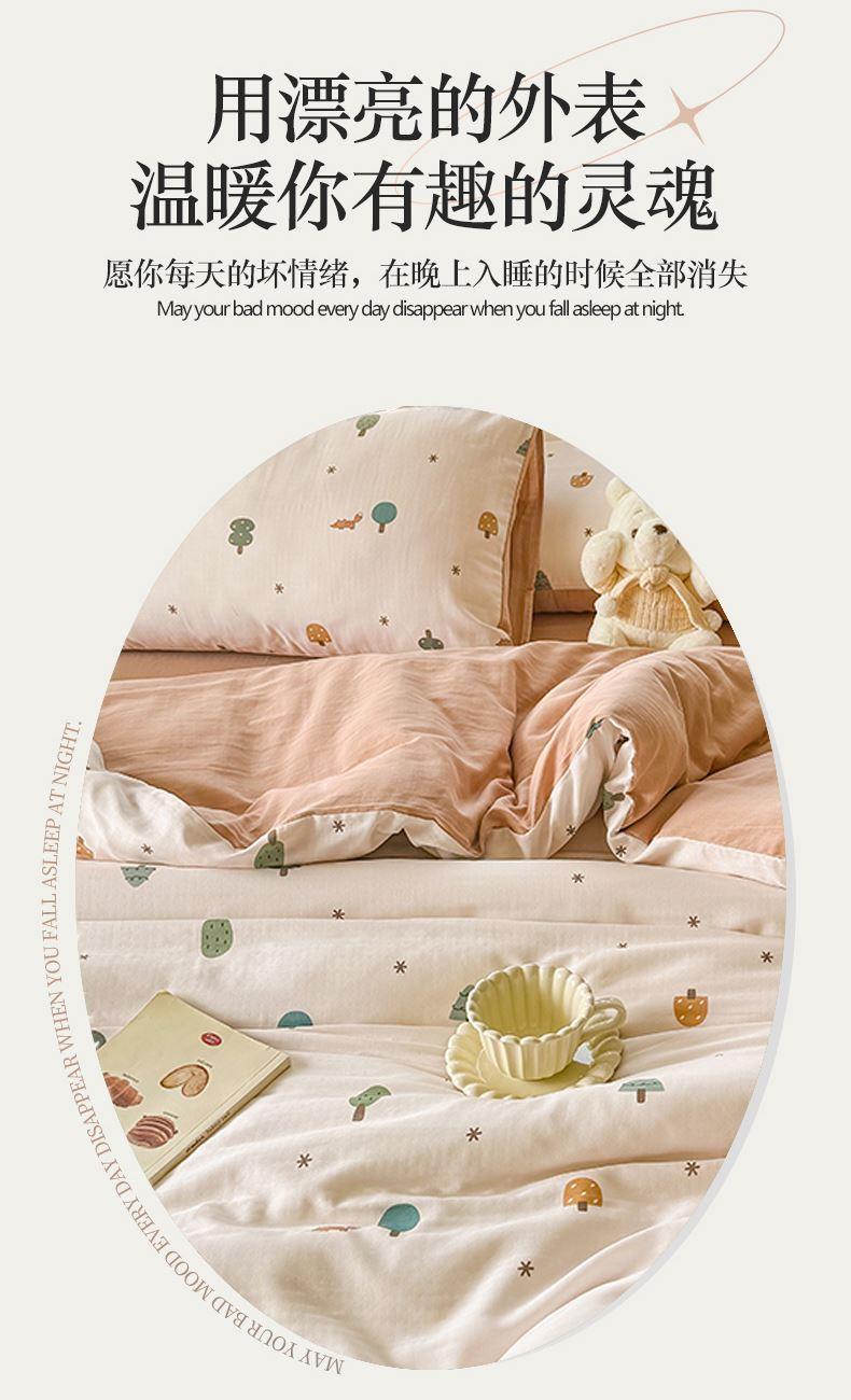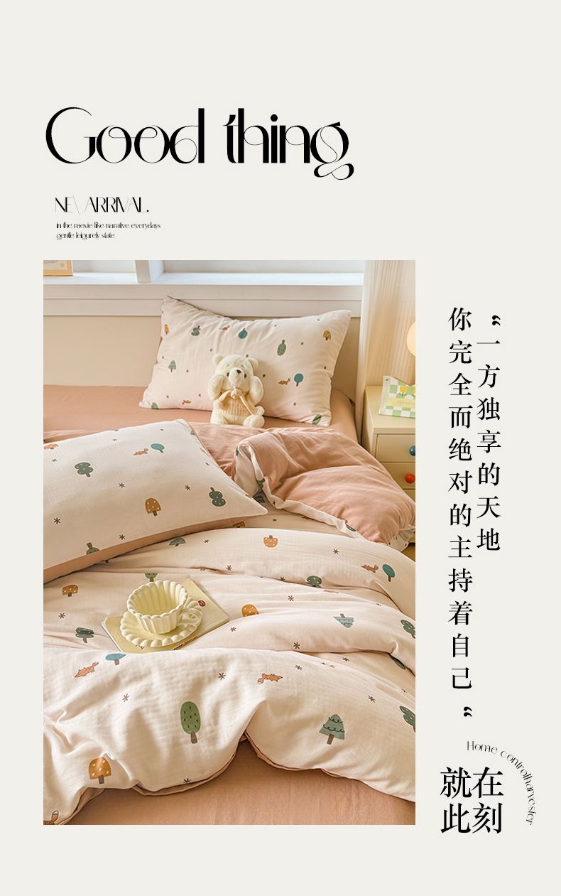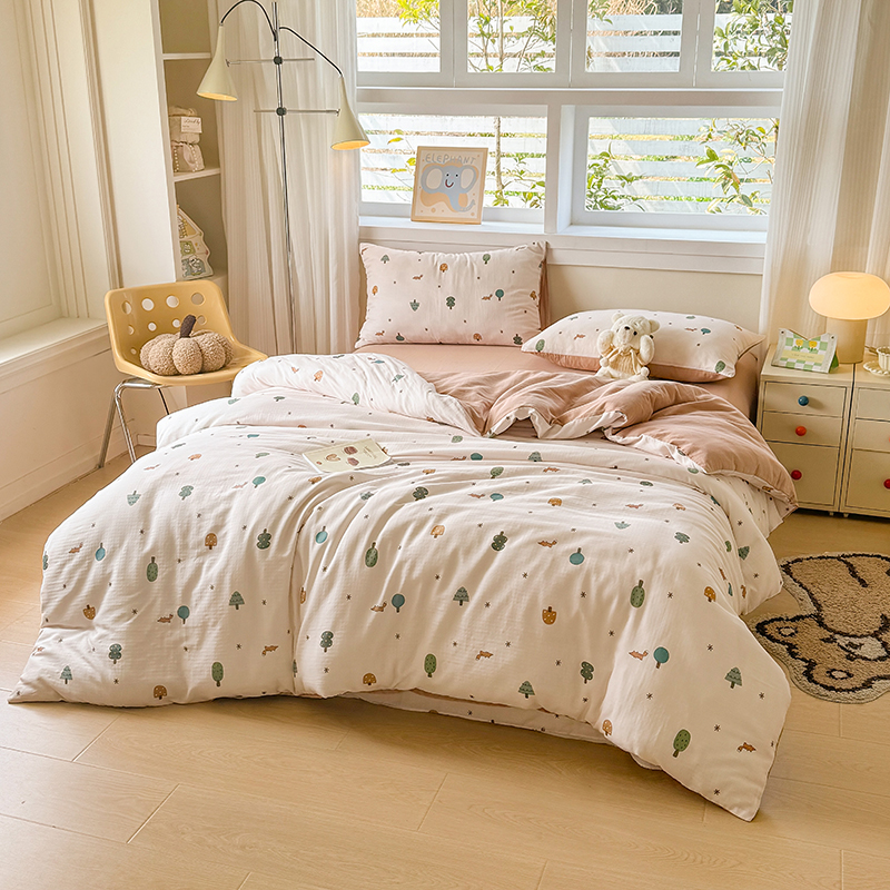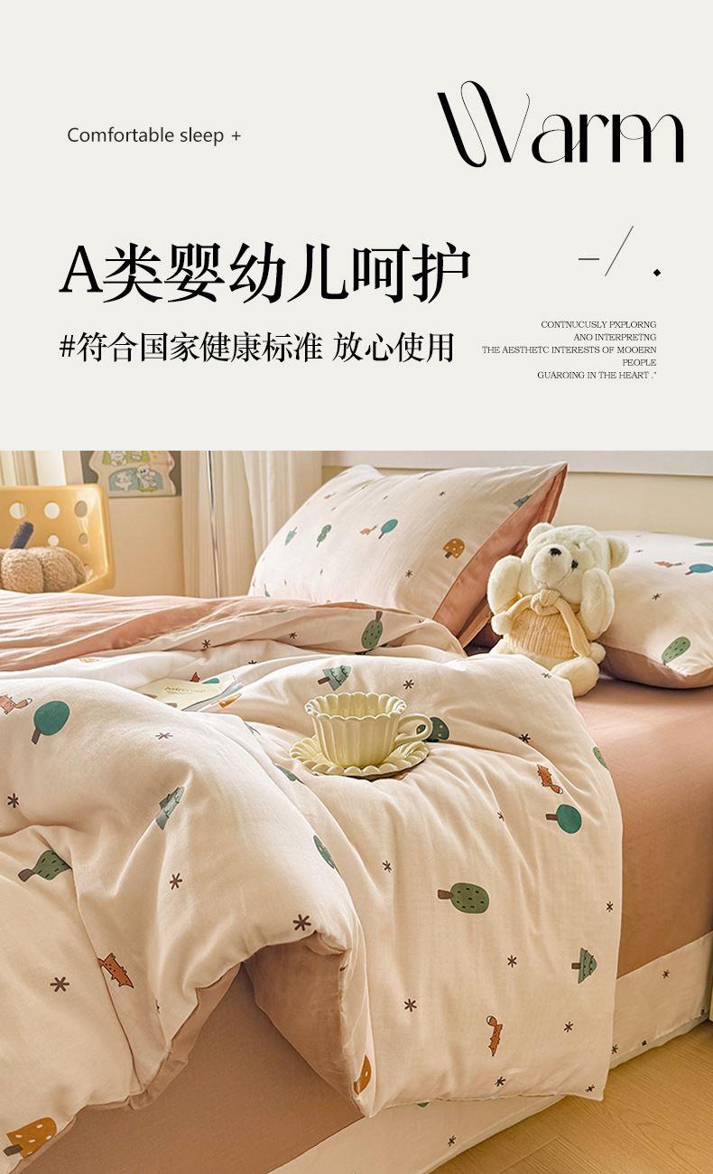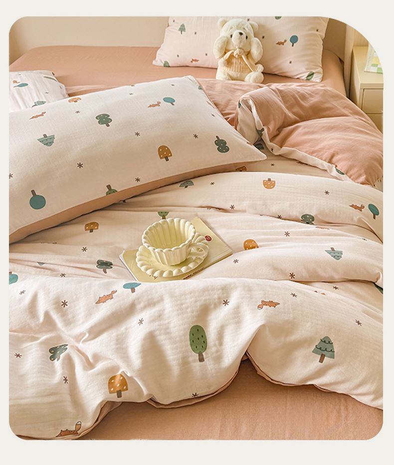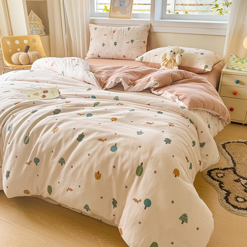被套:200×230cm 床單:245×245cm 枕套:48×74cm 適用:1.5M-1.8M床 面料:雙層紗(棉) 棉雙層紗面料 邂逅高密全棉雙層紗面料制作親膚舒適兼具觸覺(jué)與視覺(jué)享受,有良好的透氣性、吸濕性時(shí)刻擁有春風(fēng)徐徐般的柔軟體驗(yàn)。