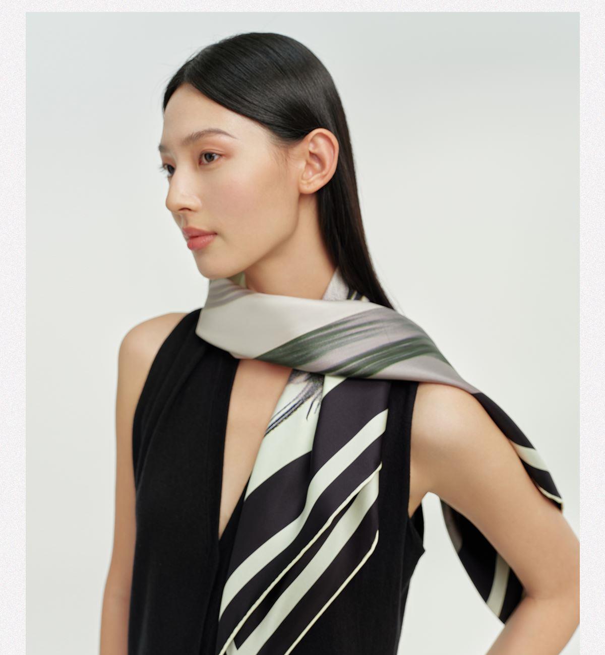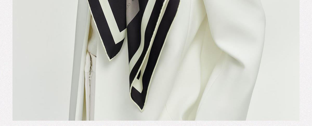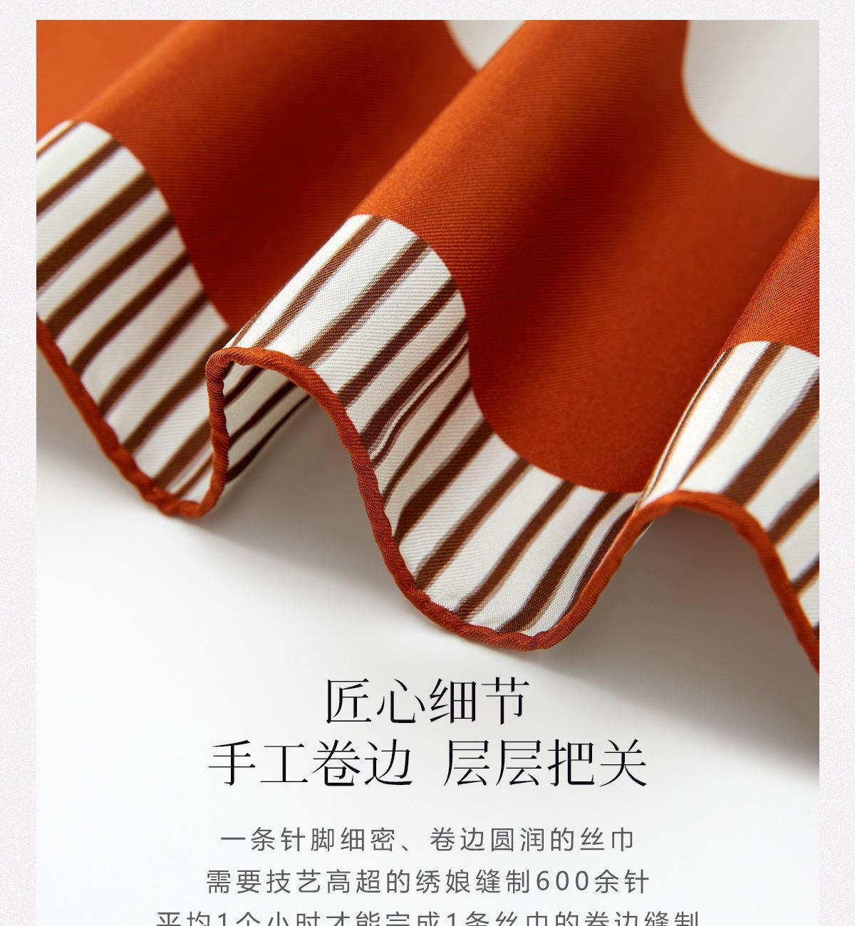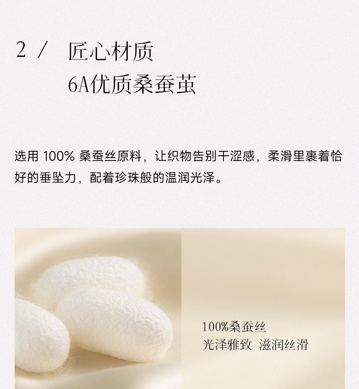 2.甄選 18mm 斜紋綢面料,質(zhì)感瑩潤挺括,紋理細(xì)膩有光澤;搭配精致手工卷邊工藝,針腳細(xì)密平整,每一處細(xì)節(jié)都盡顯匠心質(zhì)感,柔韌耐戴更顯精致格調(diào)。