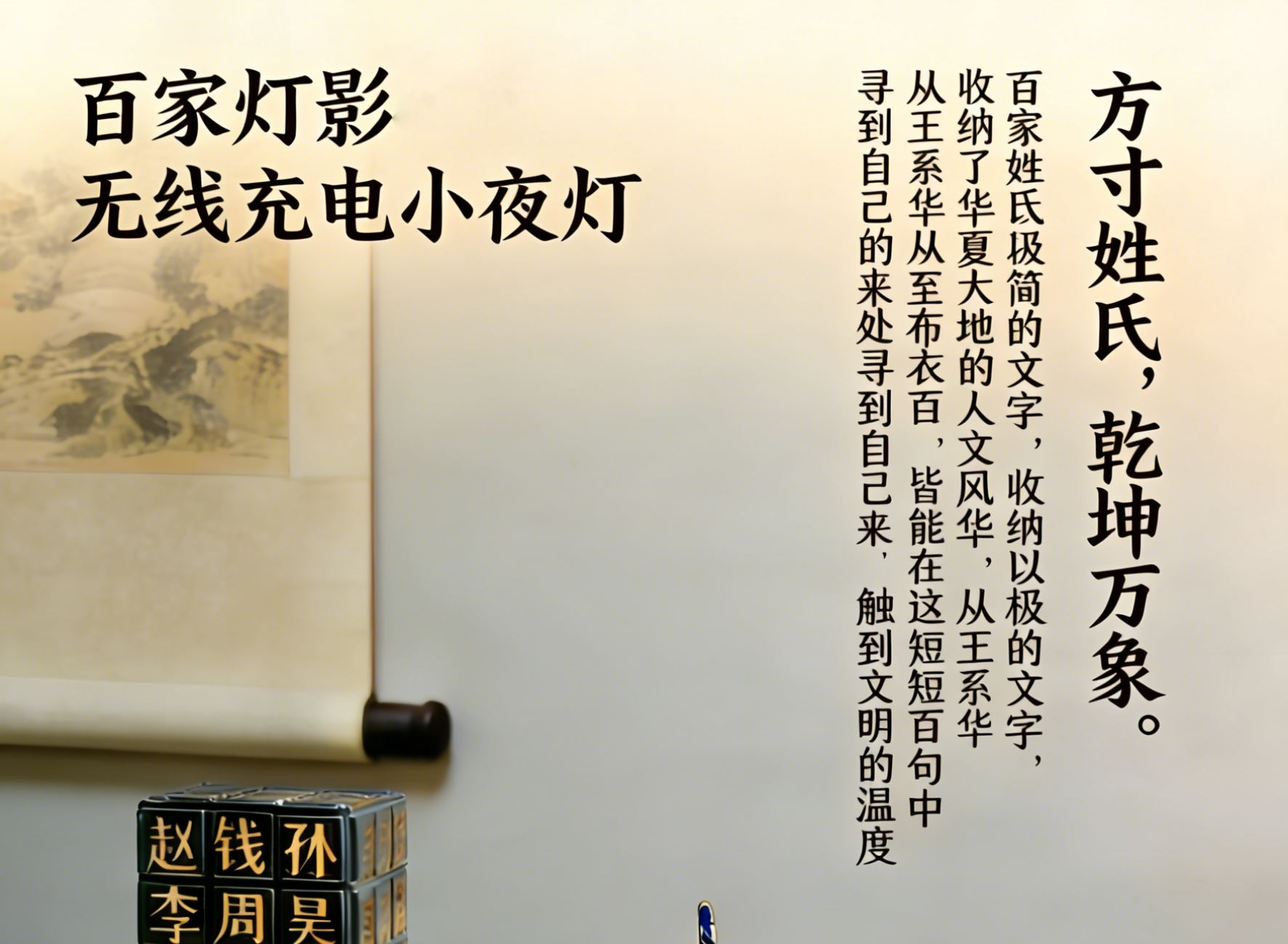 百家燈影--無(wú)線(xiàn)充電小夜燈 可定制文字logo 箱裝數(shù):100個(gè) 材質(zhì):abs