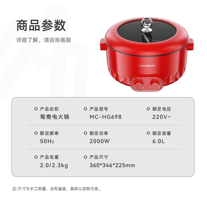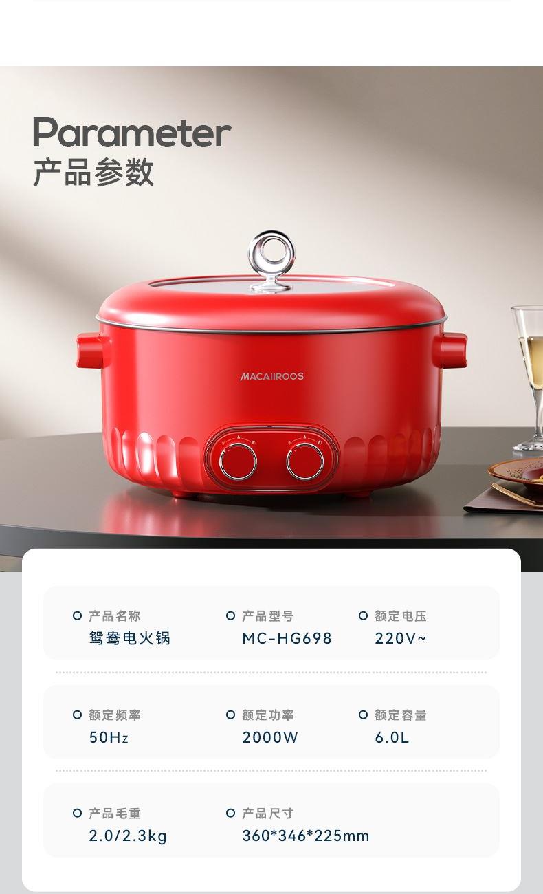 美國邁卡羅鴛鴦電火鍋MC-HG698 美國邁卡羅鴛鴦電火鍋MC-HG698