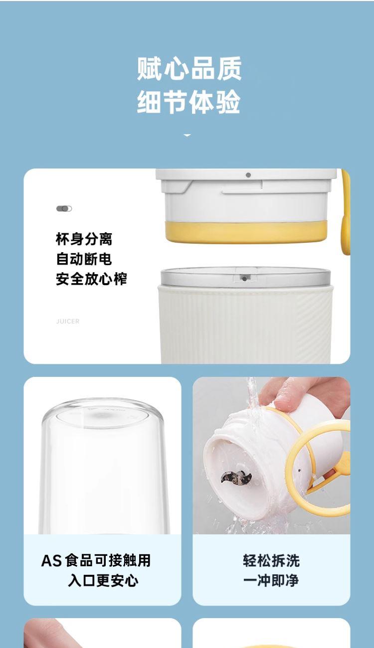 功率:40W 電壓:5V/1A 容量:300mL 毛重:0.45Kg 材質(zhì):外殼AS+304不銹鋼刀片 彩盒包裝尺寸:102*102*219mm 外箱包裝尺寸:50*460*460mm 推薦理由: 1、一鍵操作,方便實(shí)用 2、外殼AS安全材質(zhì),304不銹鋼刀片 3、添加防滑硅膠套,方便易拿 4、Type-C充電接口,充電方便