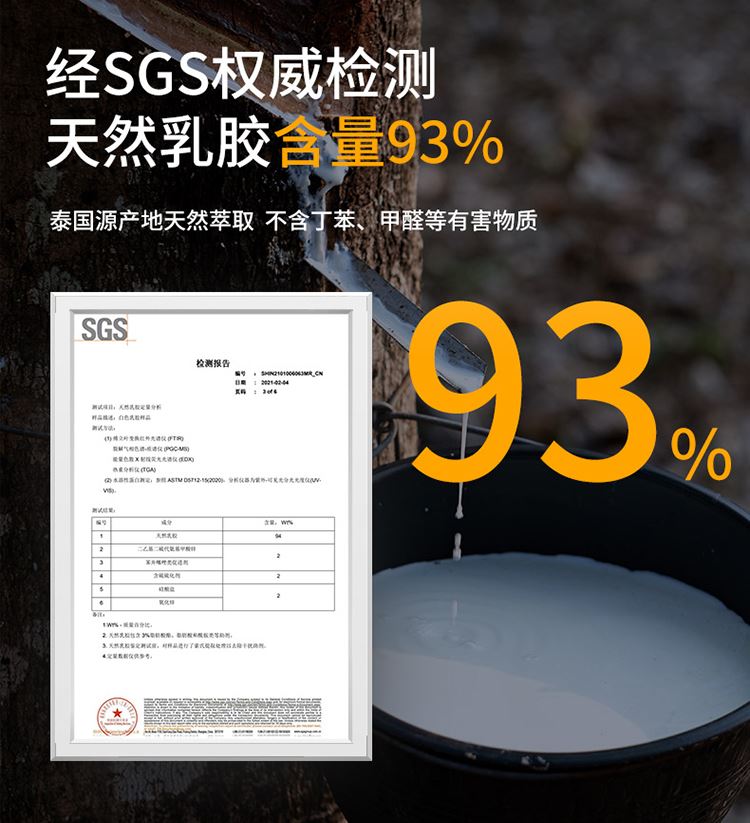 內(nèi)芯:93%乳膠,7%發(fā)泡助劑