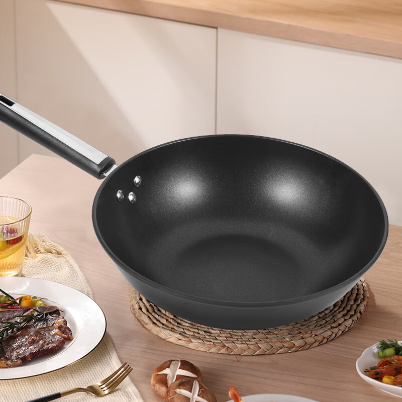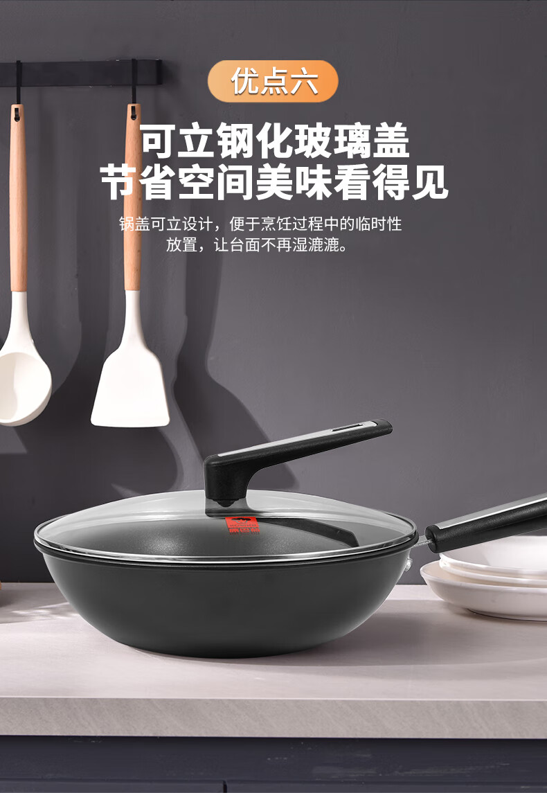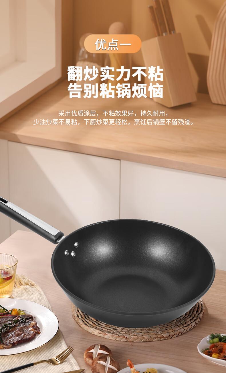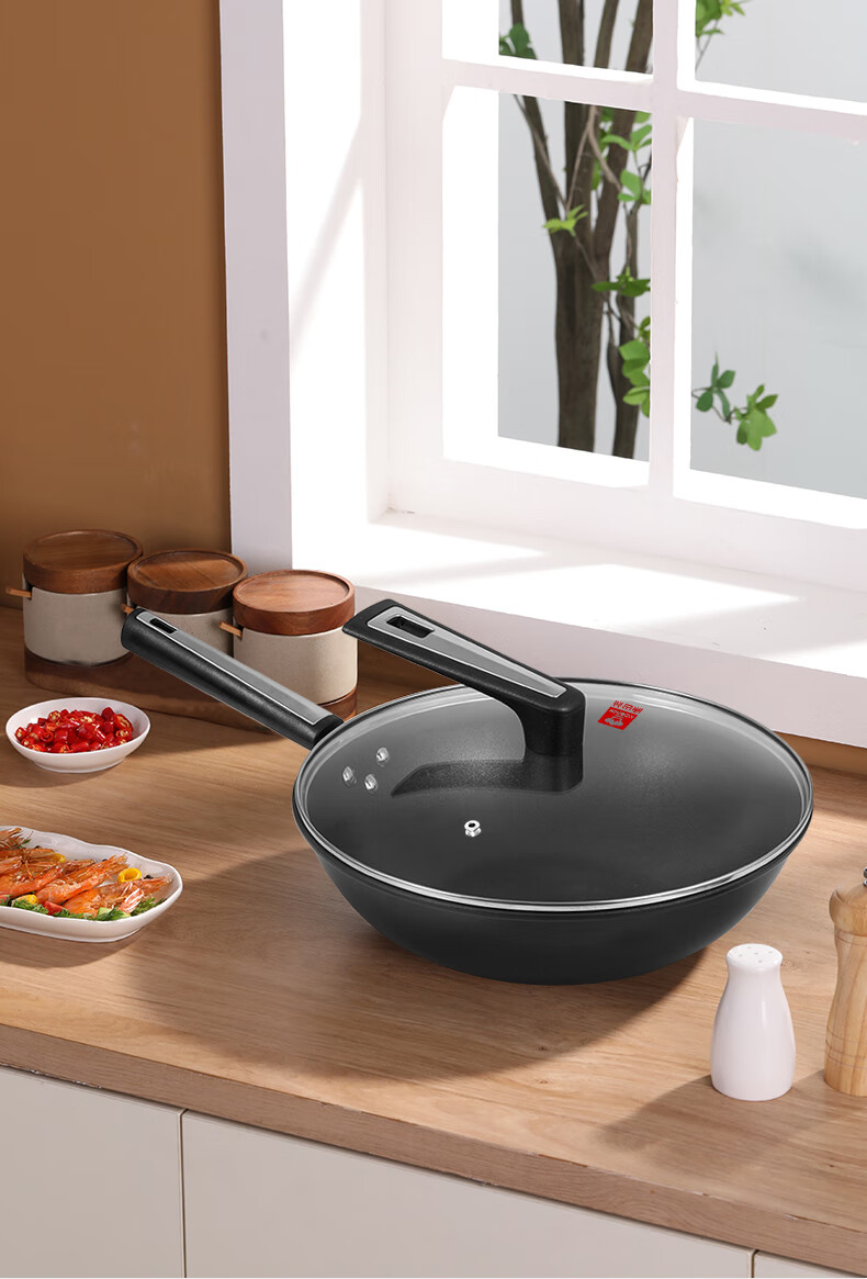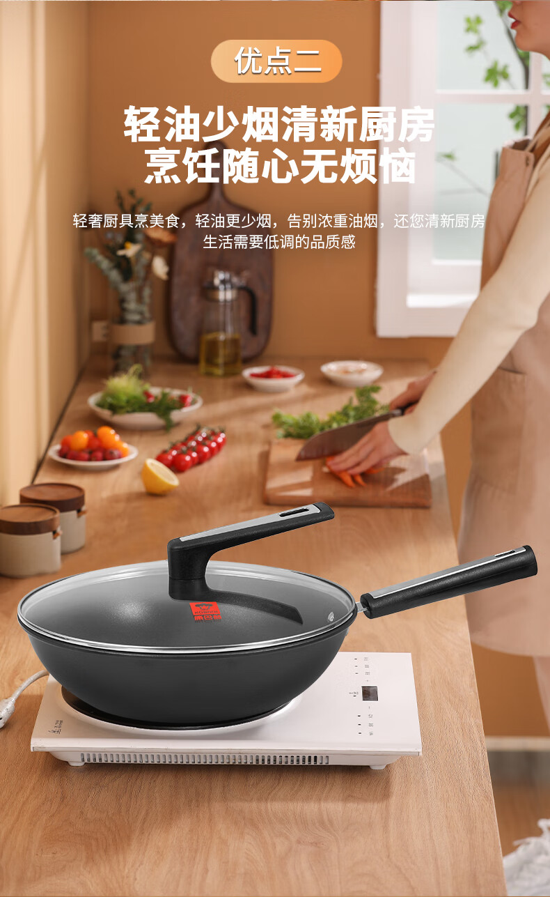 ◎翻炒實(shí)力不粘告別粘鍋煩惱:采用優(yōu)質(zhì)涂層,不粘效果好,持久耐用,少油炒菜不易粘,下廚炒菜更輕松,烹飪后鋼壁不留殘?jiān)?◎輕油少煙清新廚房烹飪隨心無煩惱:輕奢廚具烹美食,輕油更少煙,告別濃重油煙,還您清新廚房生活需要低調(diào)的品質(zhì)感