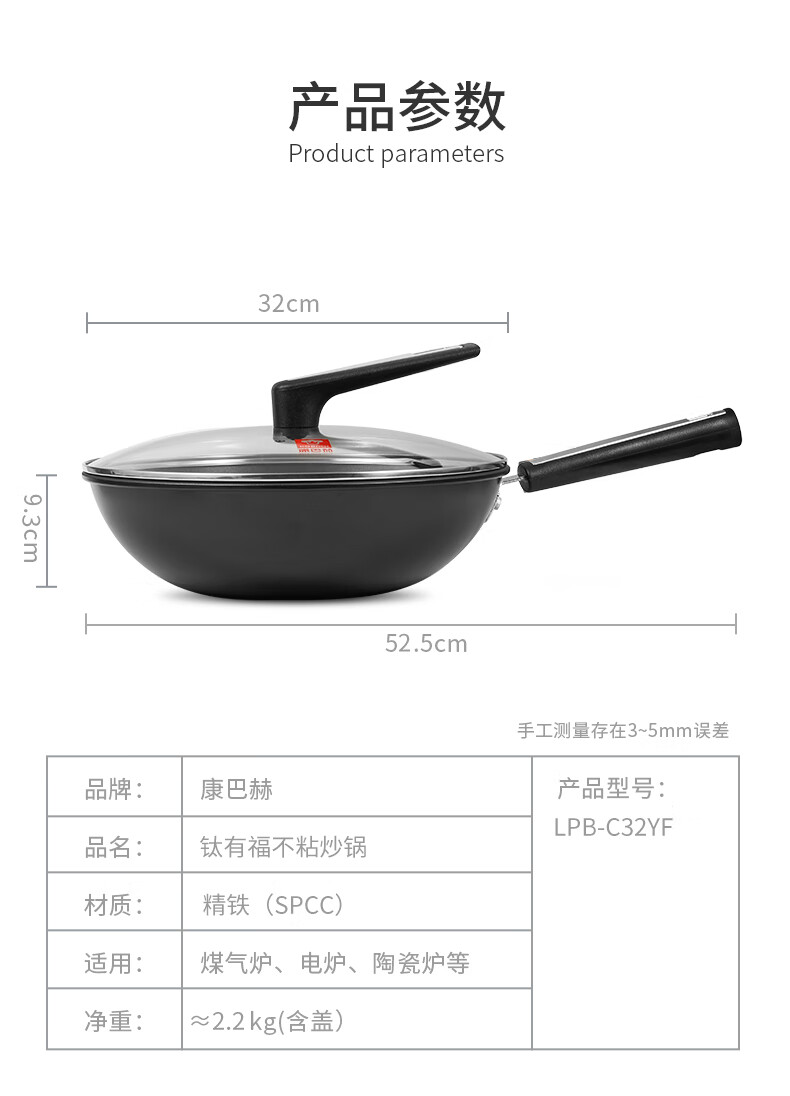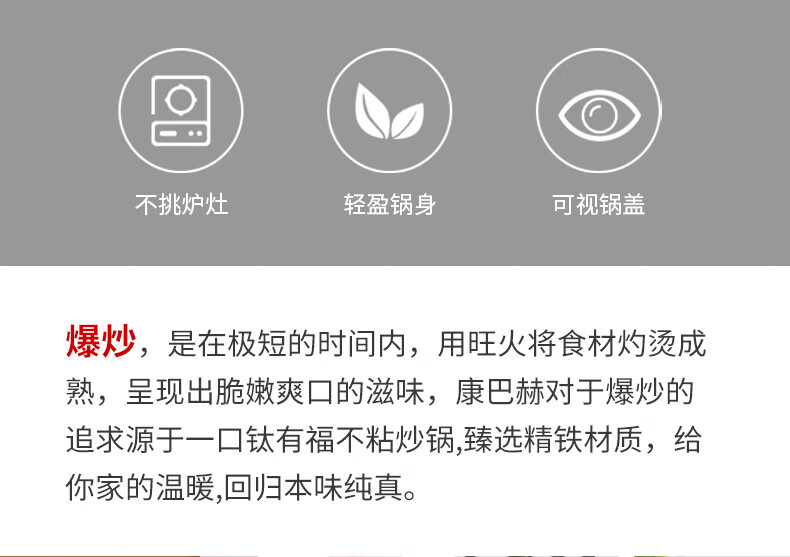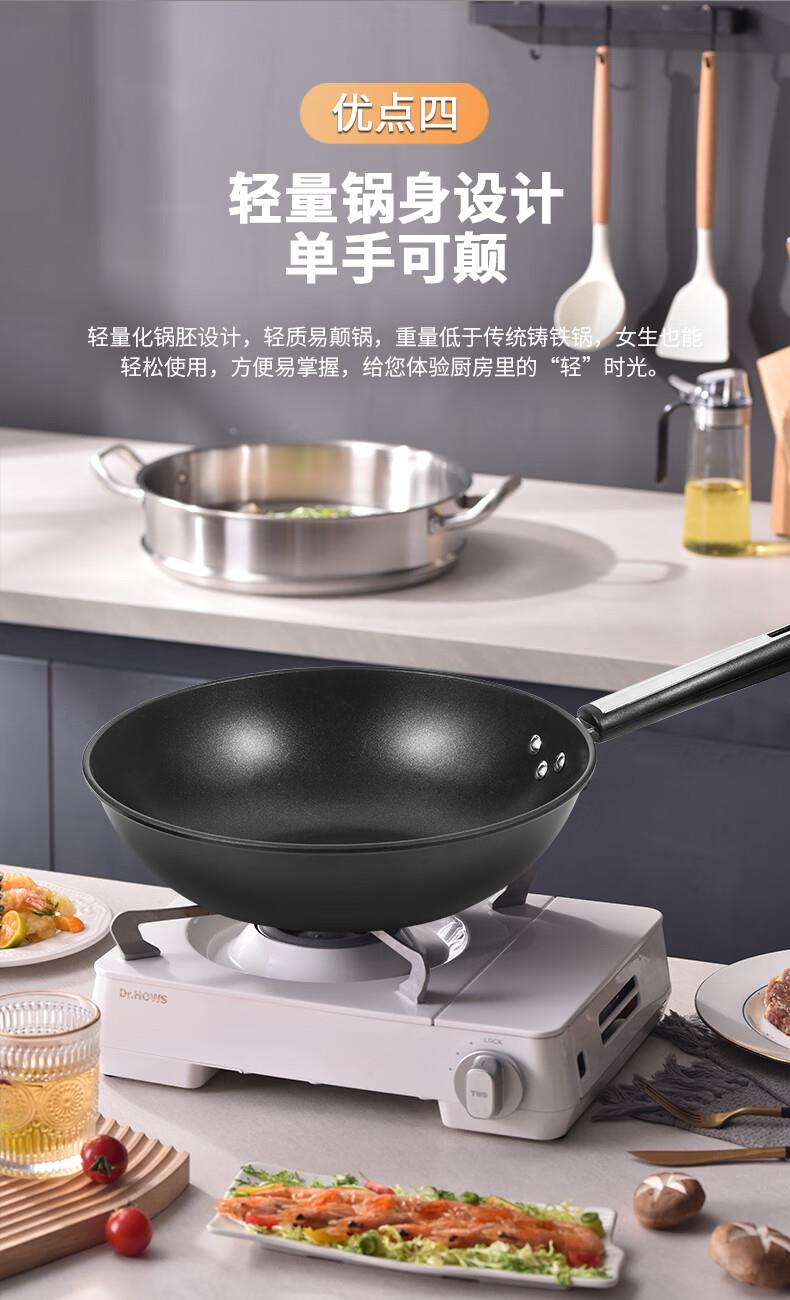 ◎輕量鍋身設(shè)計(jì),單手可顛:輕量化鍋胚設(shè)計(jì),輕質(zhì)易顛鍋,重量低于傳統(tǒng)鑄鐵鍋,女生也能輕松使用,方便易掌握,給您體驗(yàn)廚房里的“輕”時(shí)光。