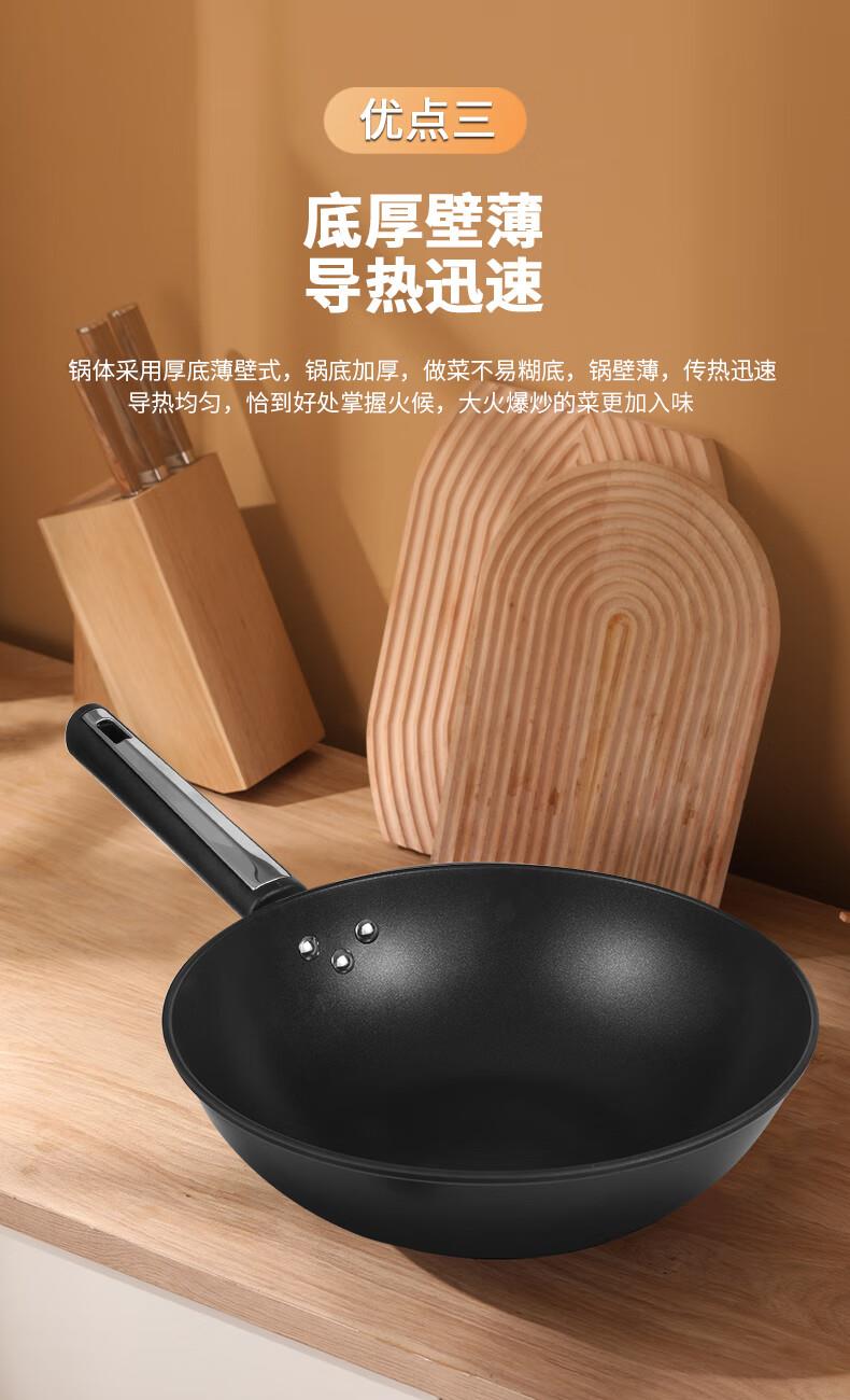 ◎底部螺旋紋設(shè)計(jì),不挑爐灶:鍋底螺旋紋設(shè)計(jì),可防止鍋底凹凸不平,精鐵材質(zhì)不挑灶,不挑鏟好鍋不受限,上手即用,是廚房里的的好搭檔。