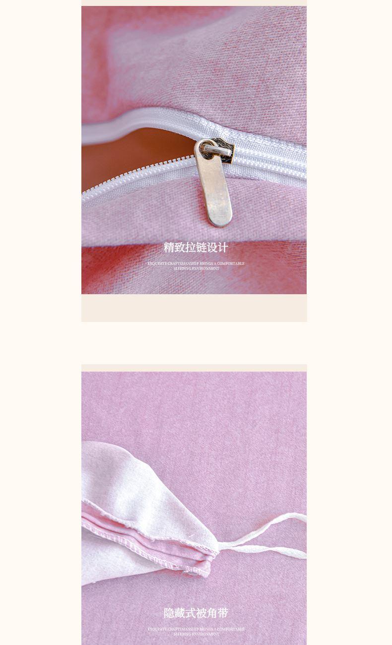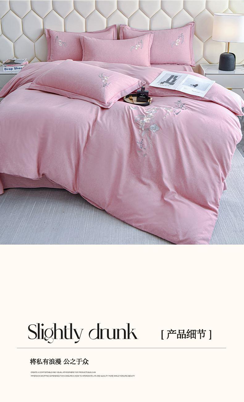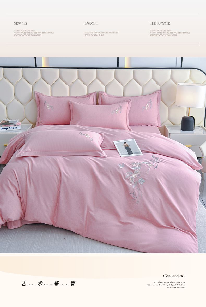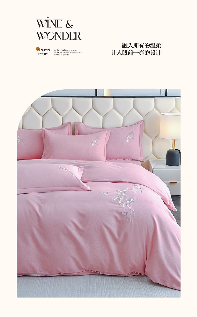 規(guī)格:1.5-1.8米床適用 被套200*230 床單245*250 枕套48*74 面料:棉 工藝:圓角床單+磨毛 花色:星空藍、糖粉、淺灰綠、羅馬灰、灰咖、紅豆沙、淡雅紫 1.全棉的面料經過磨毛工藝后,在表面形成一層短毛絨,面料柔軟豐盈,又增加了保暖性 2.細膩繡花工藝,針腳細膩均勻,不易脫線 手感細膩凹凸有致。 3.精致做工,吊邊床單設計 懸垂性好 便于打理 ,荷葉吊邊 美觀時尚 層次感強。