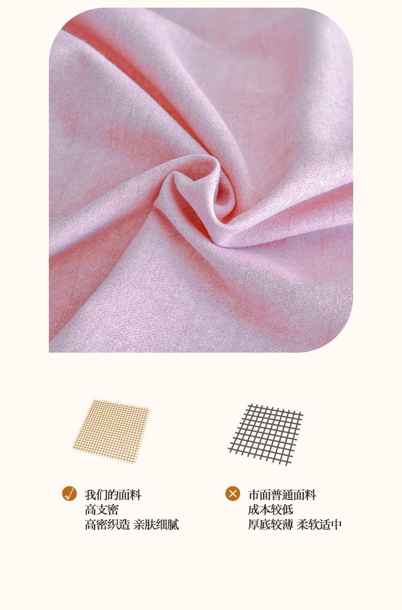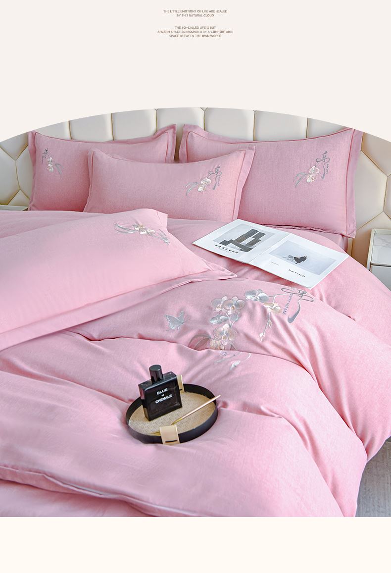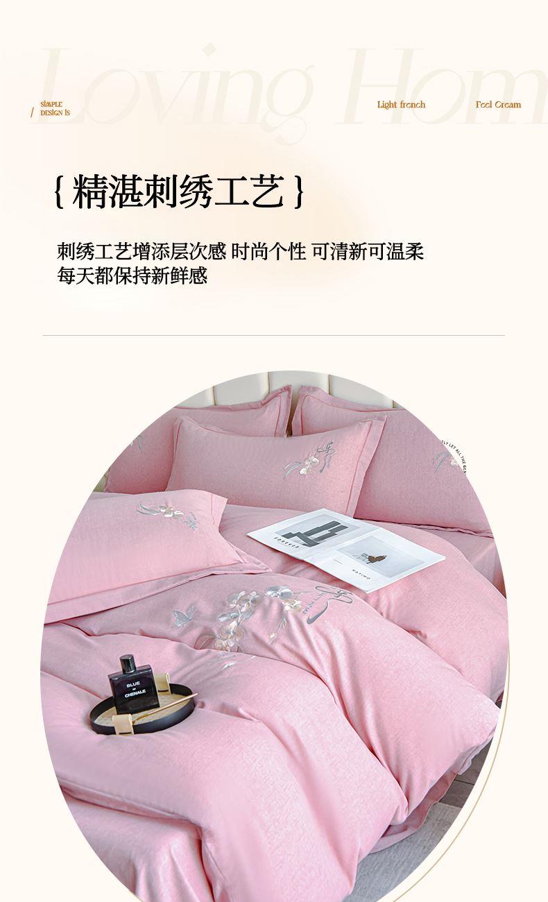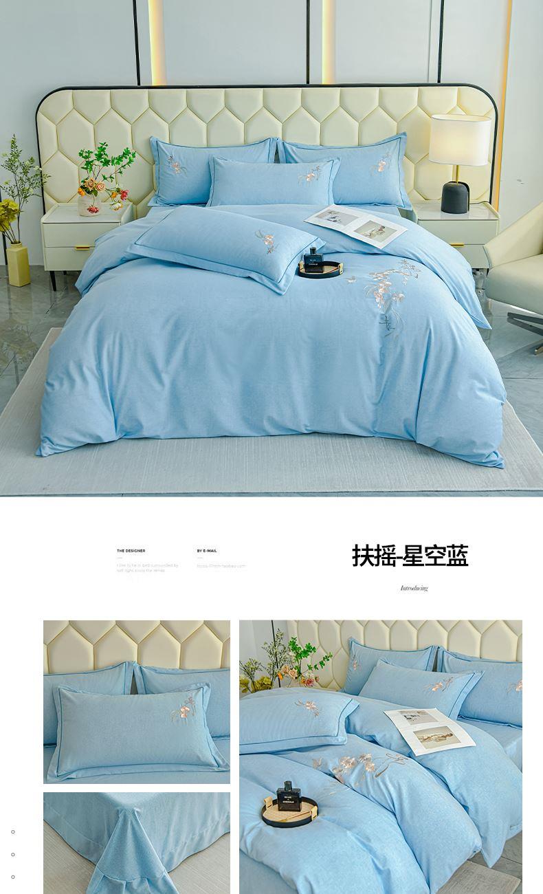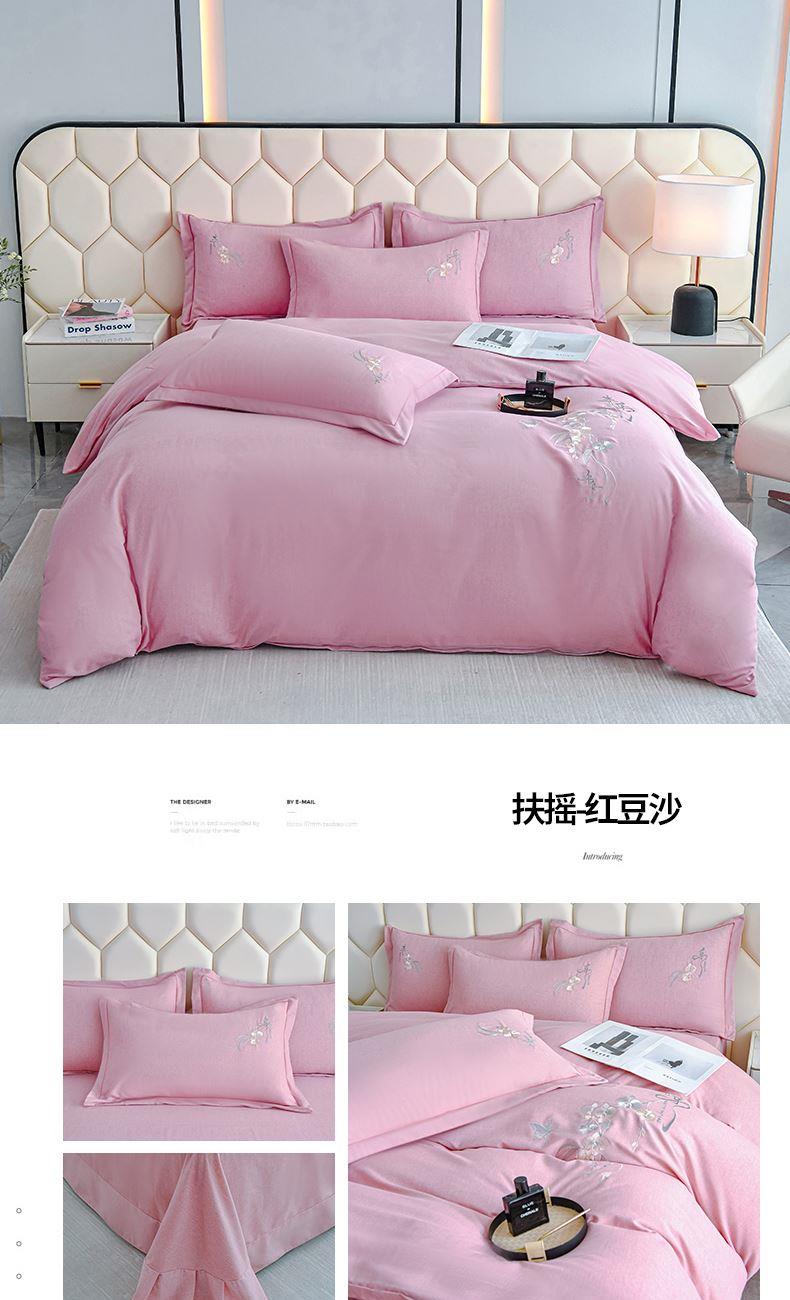 規(guī)格:1.5-1.8米床適用 被套200*230 床單245*250 枕套48*74 面料:棉 工藝:圓角床單+磨毛 花色:星空藍、糖粉、淺灰綠、羅馬灰、灰咖、紅豆沙、淡雅紫 1.全棉的面料經過磨毛工藝后,在表面形成一層短毛絨,面料柔軟豐盈,又增加了保暖性 2.細膩繡花工藝,針腳細膩均勻,不易脫線 手感細膩凹凸有致。 3.精致做工,吊邊床單設計 懸垂性好 便于打理 ,荷葉吊邊 美觀時尚 層次感強。