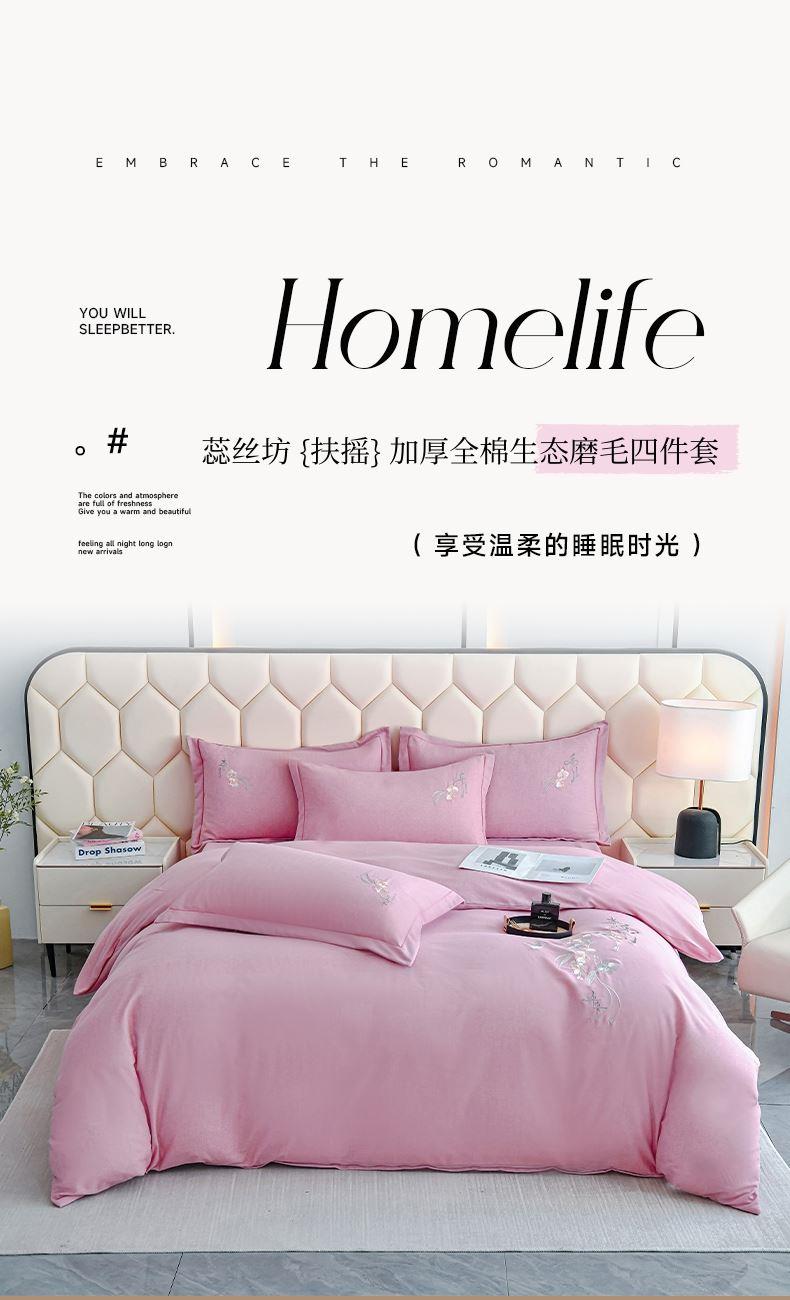 蕊絲坊家紡扶搖加厚全棉生態(tài)磨毛四件套