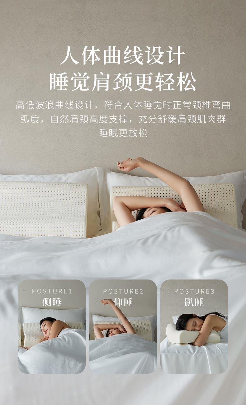 1. 94%泰國(guó)天然乳膠枕,工學(xué)護(hù)頸,好眠不過敏。