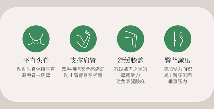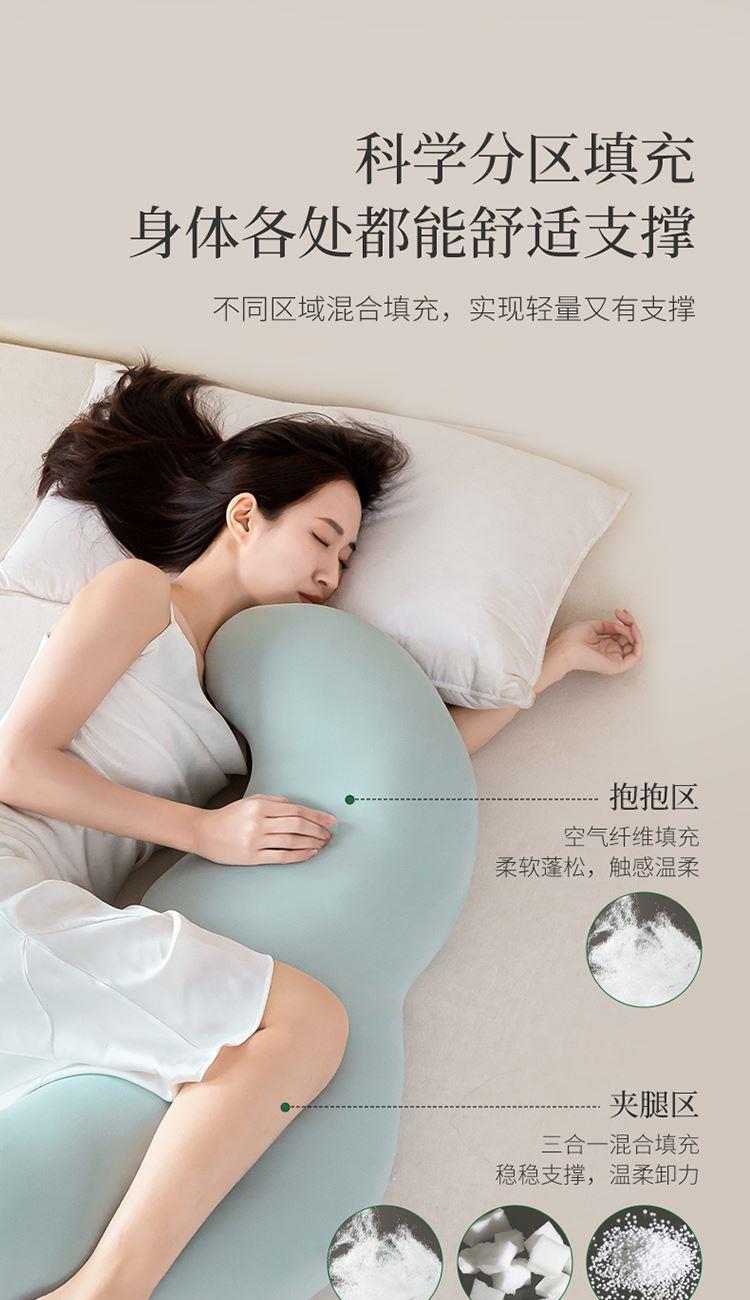益處價值:提供側(cè)睡時的良好支撐,帶來安全感和舒適感,幫助放松身心,更容易進入深度睡眠狀態(tài)。適合人群:女性用戶,孕婦,中老年人群,喜歡側(cè)睡人群
