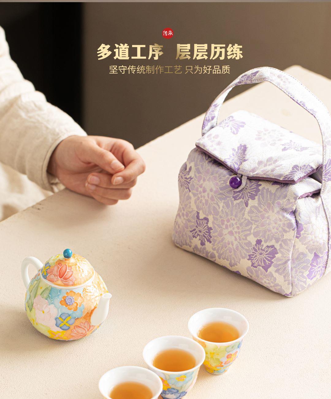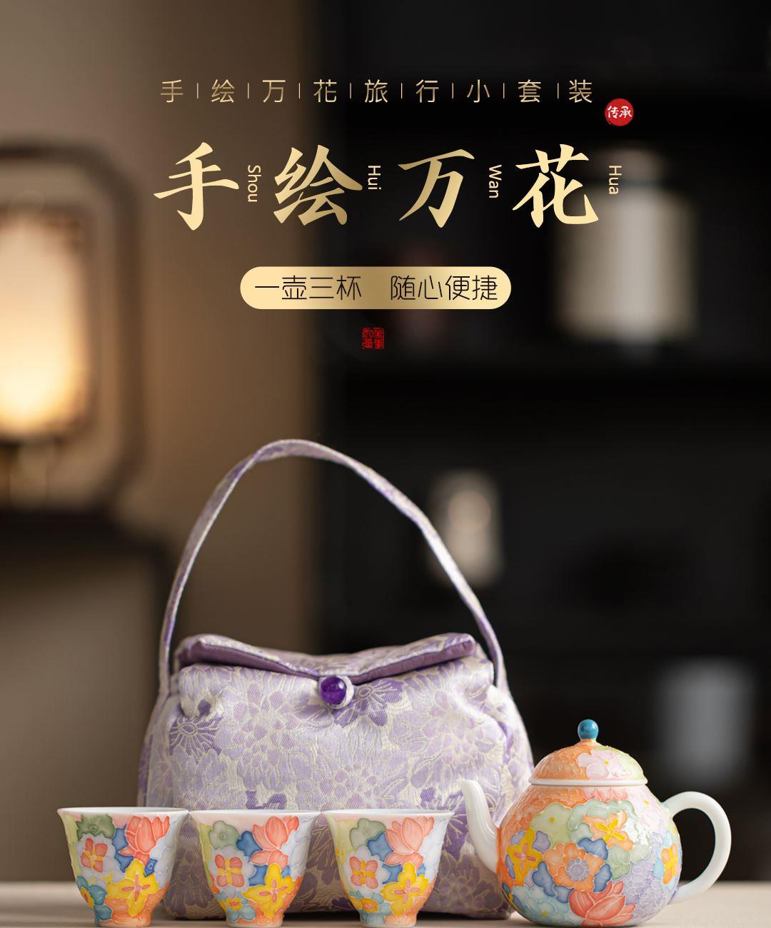 尾橋下窯有田燒手繪萬花旅行一壺三杯茶具套裝38女神節(jié)伴手禮 禮品已成功加入PPT!