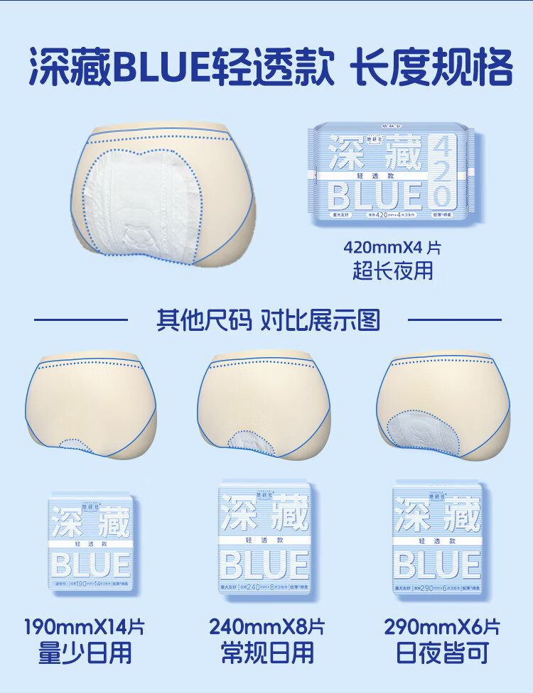 深藏blue輕透款衛(wèi)生巾夜用420mm*4片 深藏blue輕透款衛(wèi)生巾夜用420mm*4片