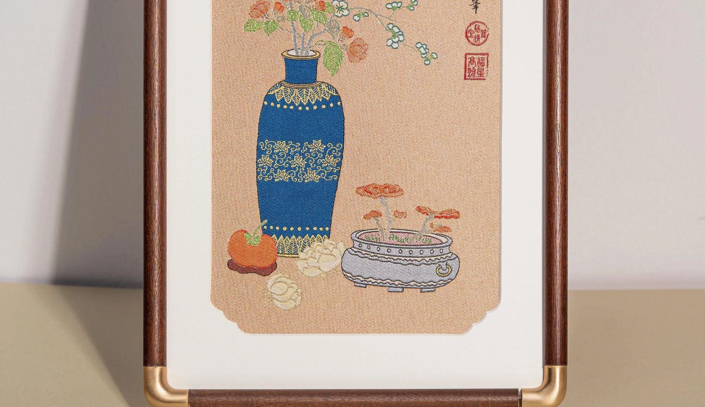 萬(wàn)事利文創(chuàng)新品真絲織錦鏡框畫織錦擺件