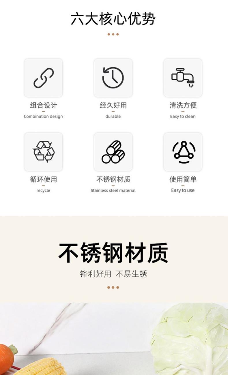 產(chǎn)品材質(zhì):PP+420不銹鋼 產(chǎn)品顏色:淺綠 包裝尺寸:195*123*30mm 包裝方式:快遞袋 單套重量:0.12KG 產(chǎn)品條碼:6953300072083