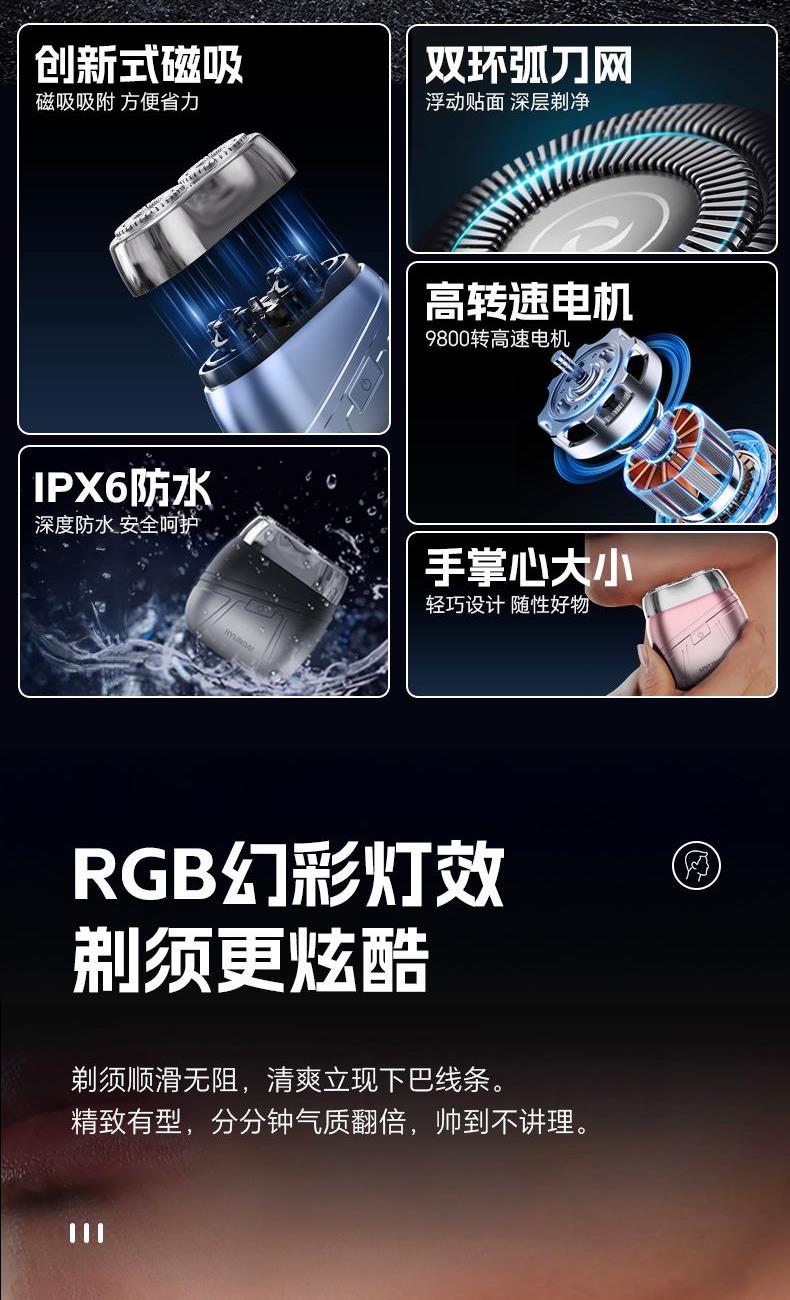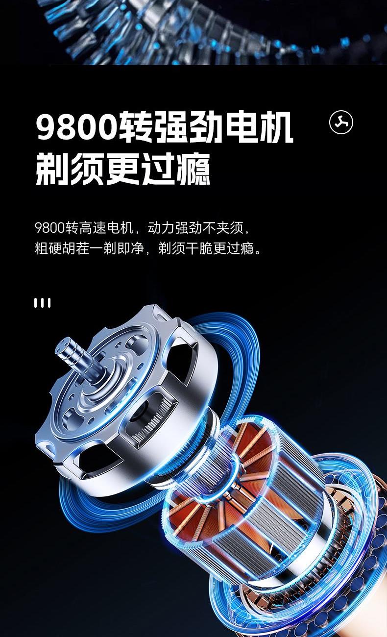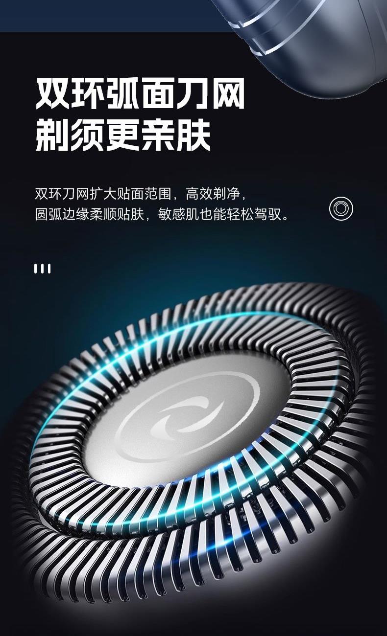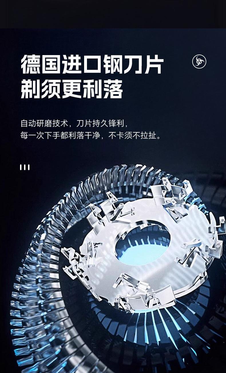 ● 浮動(dòng)雙研磨刀頭,雙環(huán)弧面刀網(wǎng),德國(guó)進(jìn)口鋼刀片 ● 馬達(dá)轉(zhuǎn)速9800,創(chuàng)新式磁吸 ● “銀盾衛(wèi)士”,流暢的線條設(shè)計(jì)