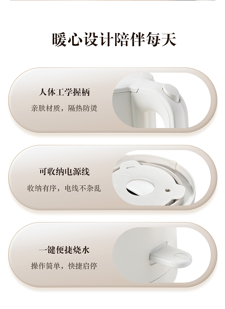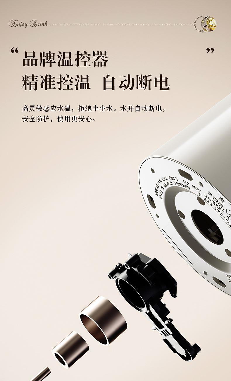 ◎靈敏溫控,三重保護(hù),貼心守護(hù)。溫控靈敏,滴滴鮮活告別半生水,拒絕重復(fù)沸騰;