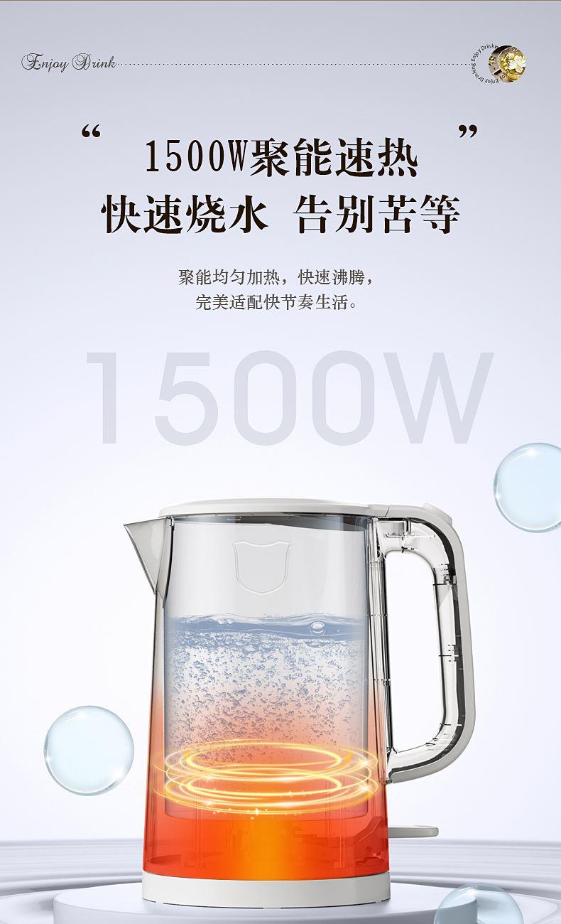 ◎1500W聚能加熱,快速燒水不久等。自上而下均衡受熱,加熱沸騰不耽誤寶貴時(shí)間;