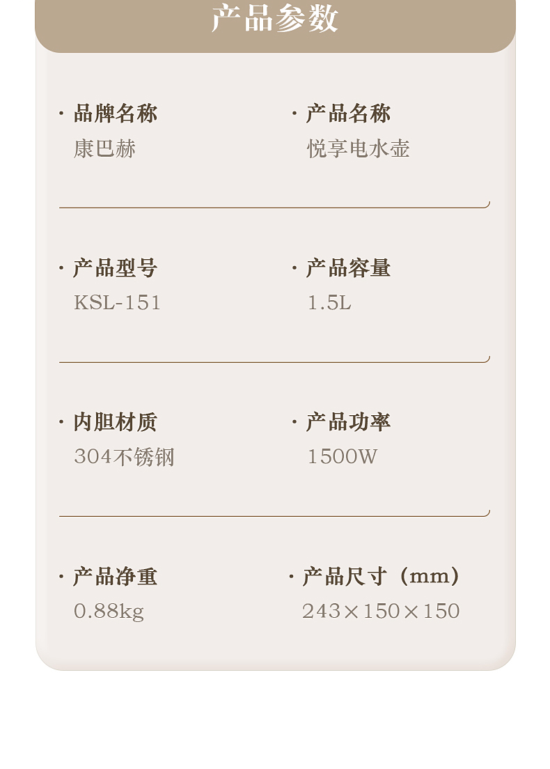康巴赫電熱水壺1.5LKSL-151