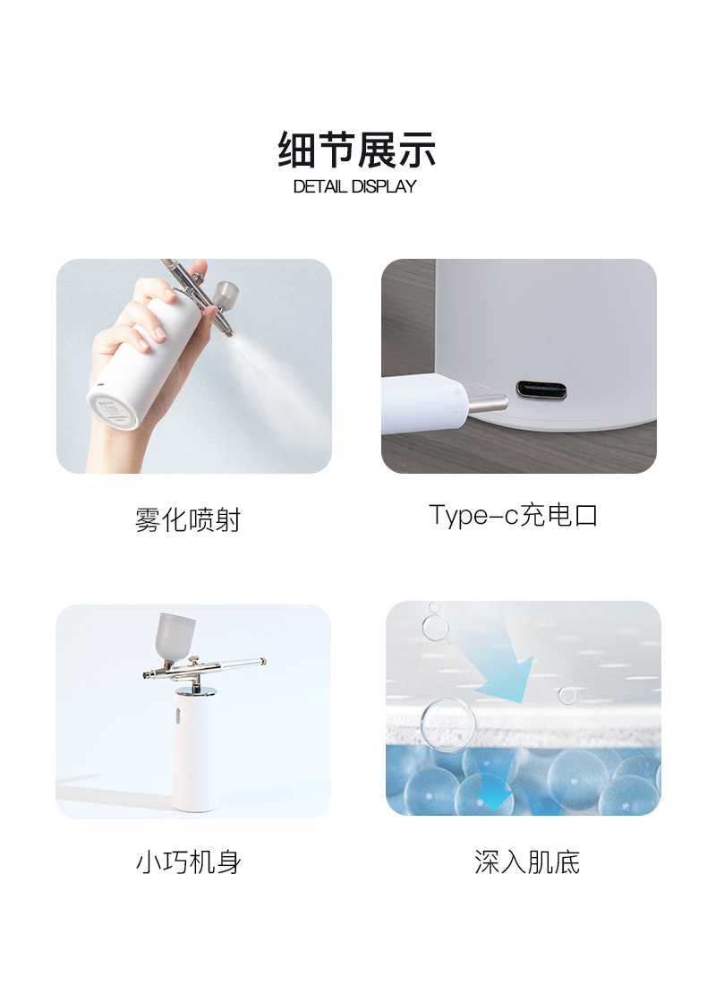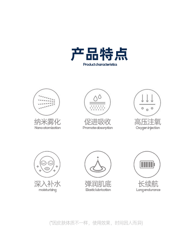 1、 0.3mm納米霧化噴射,精華深層吸收,滿足肌膚補(bǔ)水需求