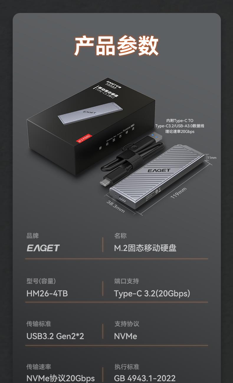 (EAGET)憶捷長江存儲(chǔ)顆粒純國產(chǎn)芯片HM26固態(tài)硬盤4T