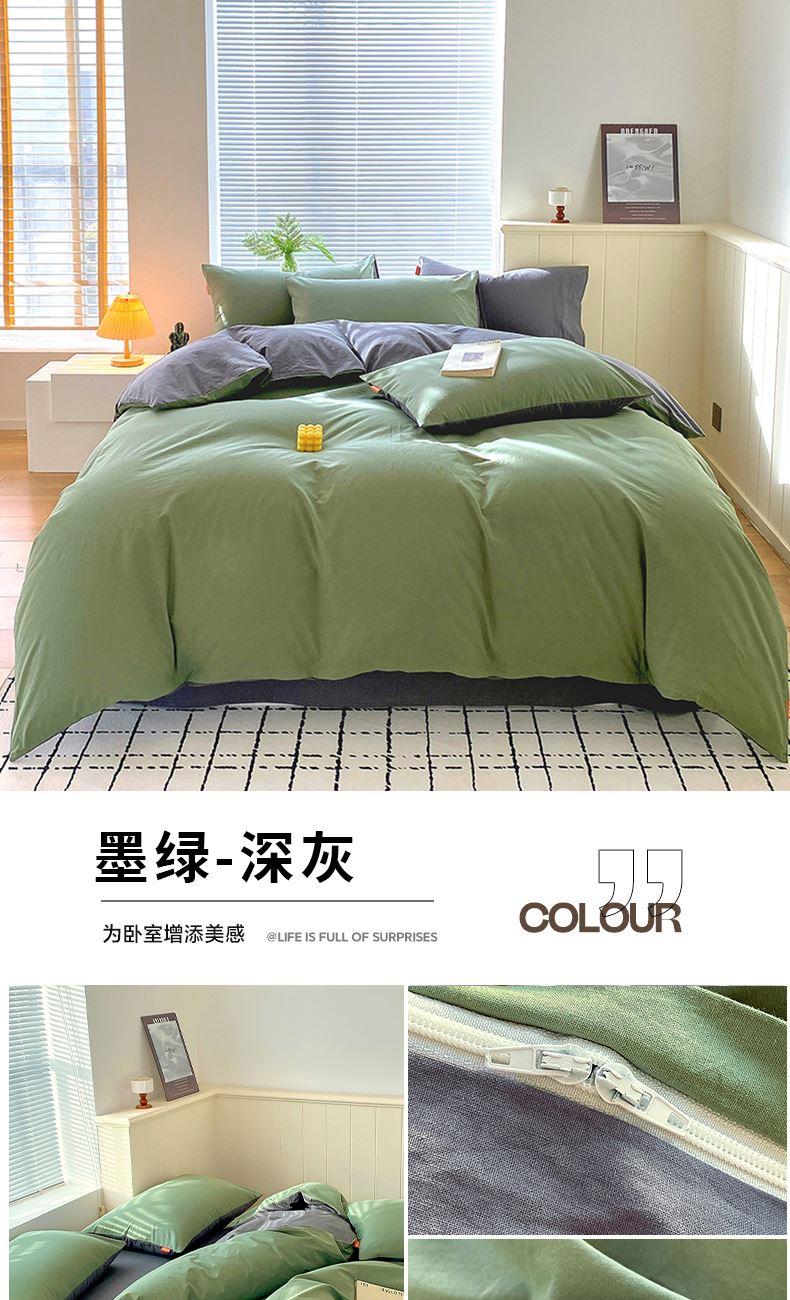 規(guī)格:被套200*230cm 床單240*245cm 枕套48x74cm 面料:成分:全棉 花色:果綠-墨綠,焦糖-深黃,墨綠-深灰,淺黃-果綠,淺灰-卡其,淺玉-卡其,淺玉-淺黃,深黃-果綠,深黃-淺黃,深灰-淺灰,水藍-淺黃,水藍-天藍 噴氣平紋。印染:古老印染工藝,環(huán)保,健康。水洗:經(jīng)過水洗工藝處理,更環(huán)保,貼膚,全棉縮水也解決了