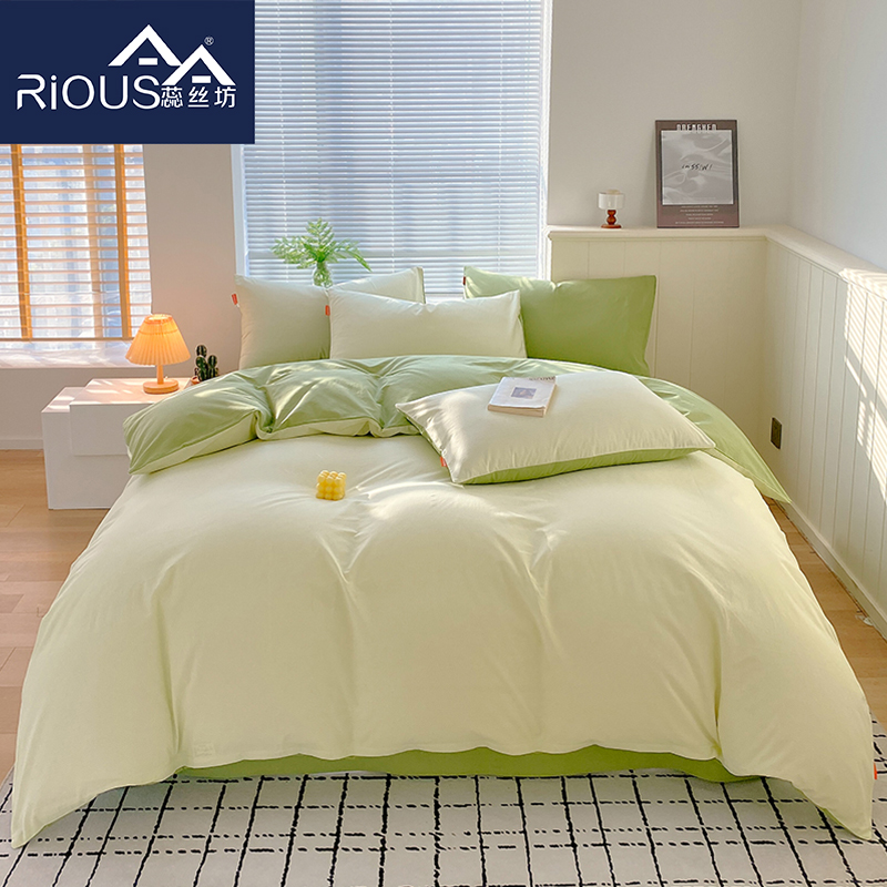 蕊絲坊家紡新款雙拼水洗棉床單四件套