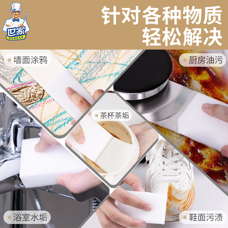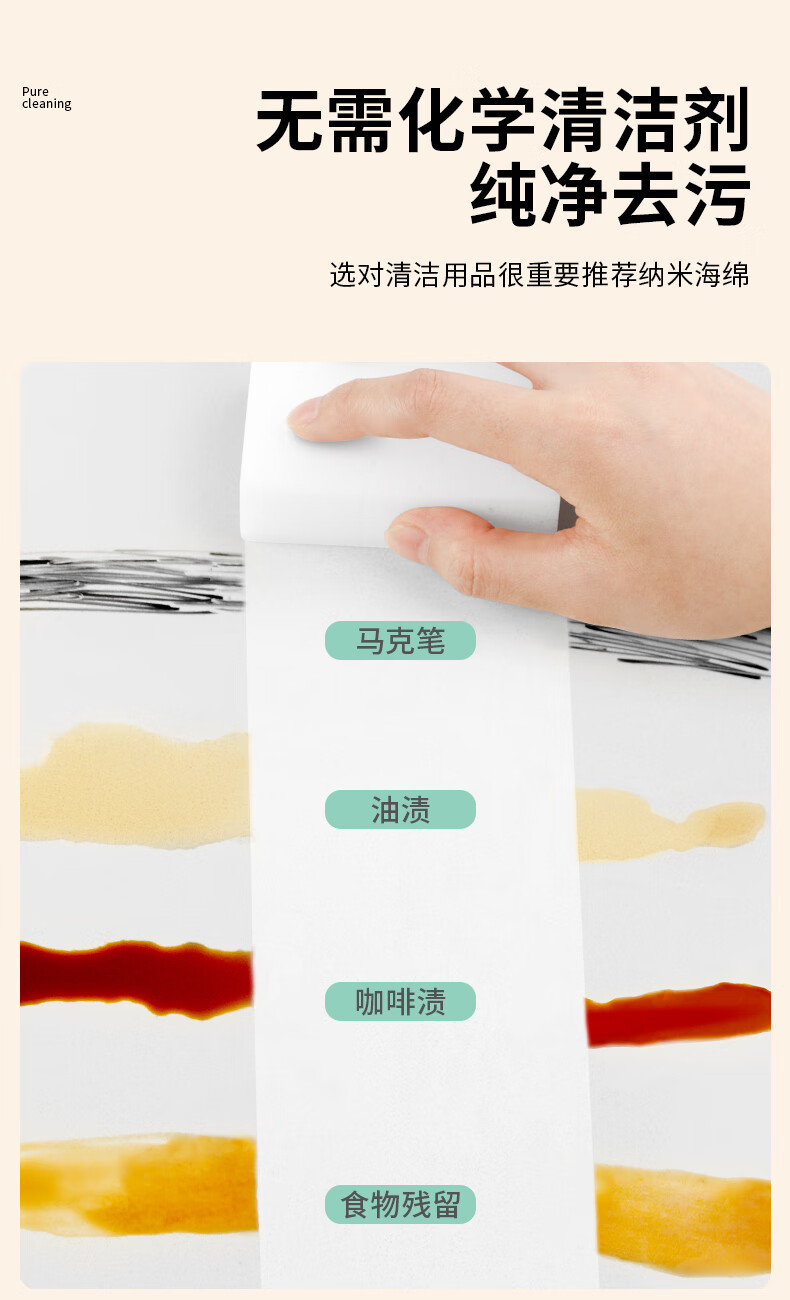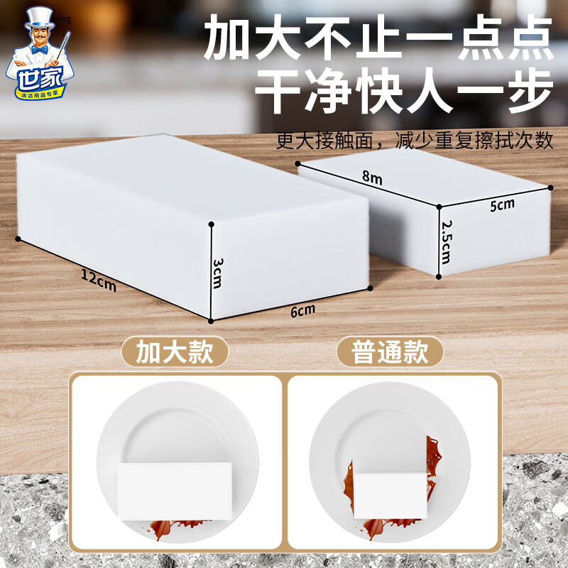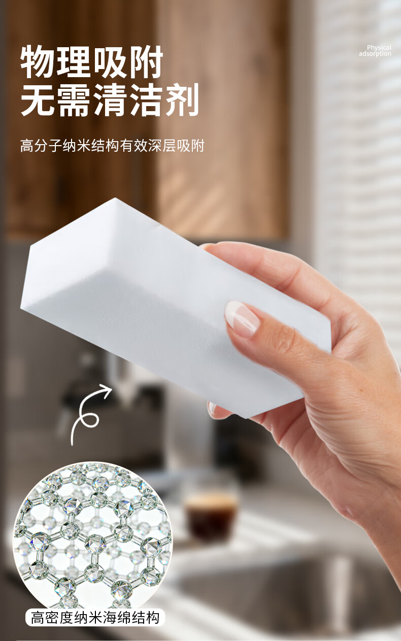 材質(zhì):密胺海綿 尺寸:12cmX6cmX3cm 貨號:21994 適用:廚房 家電 瓷磚等 納米海綿擦 12片加大款 更高密度工藝一擦即凈 加大尺寸 高密壓縮 物理去污