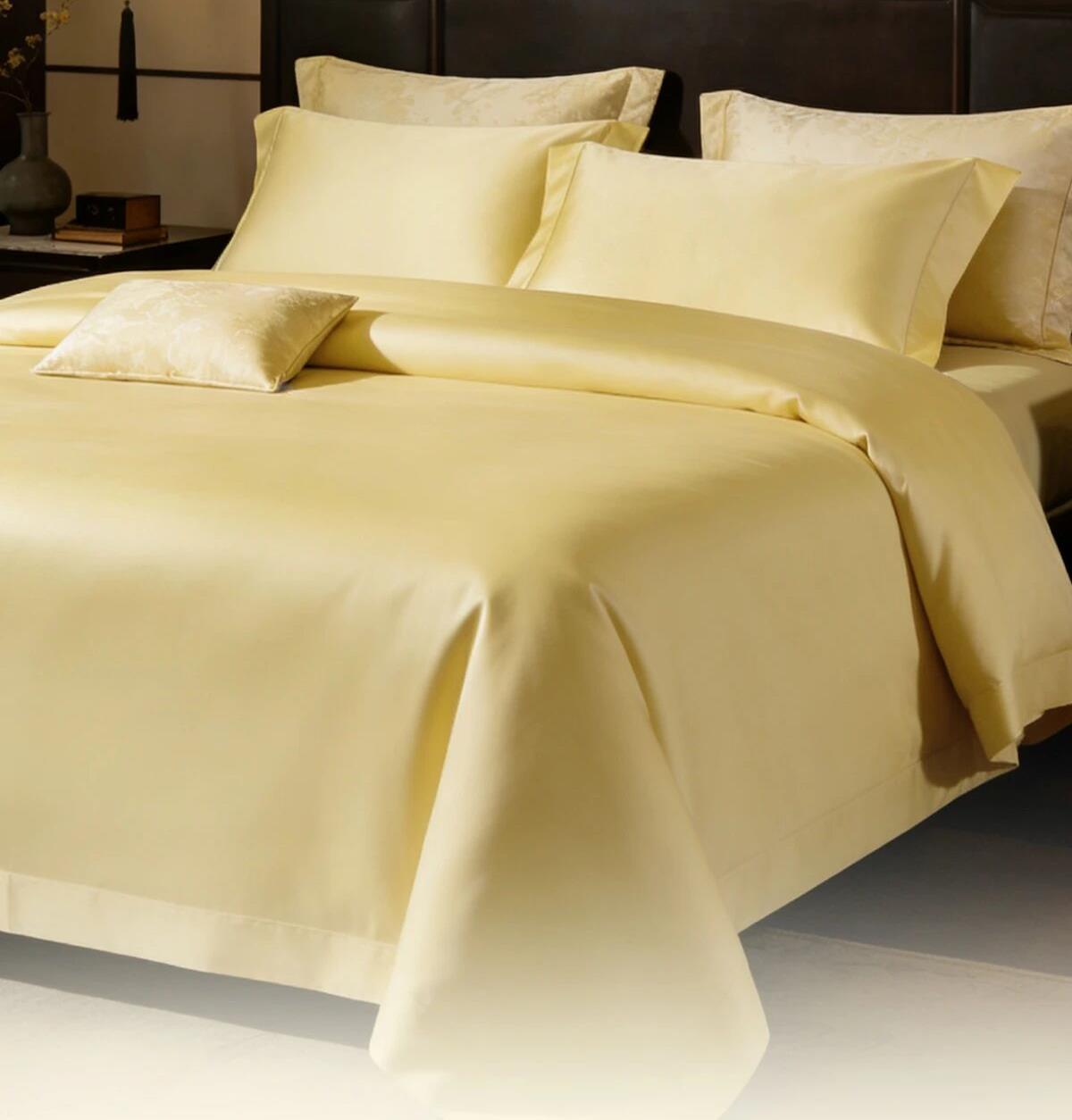 材質(zhì):100棉(60支全棉) 顏色:金色/粉色/灰色 工藝:染色 規(guī)格: 小規(guī)格: 被套:200cmX230cm 床單:230cm×250cm 枕套:48cm×74cm 大規(guī)格: 被套:220cm×240cm 床單:240cm×260cm 枕套:48cm×74cm