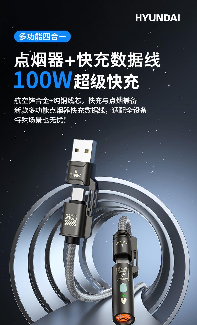 HYUNDAI四合一點(diǎn)煙器快充數(shù)據(jù)線YH-NB013