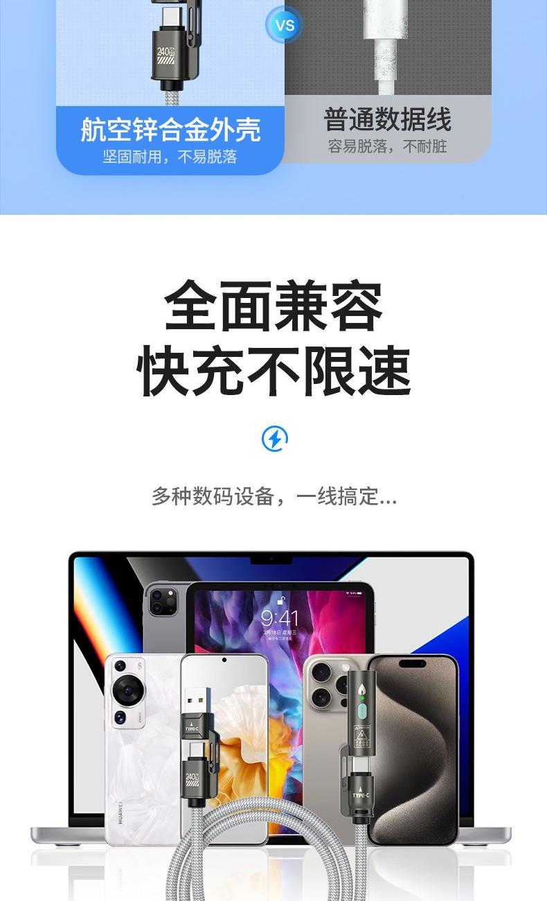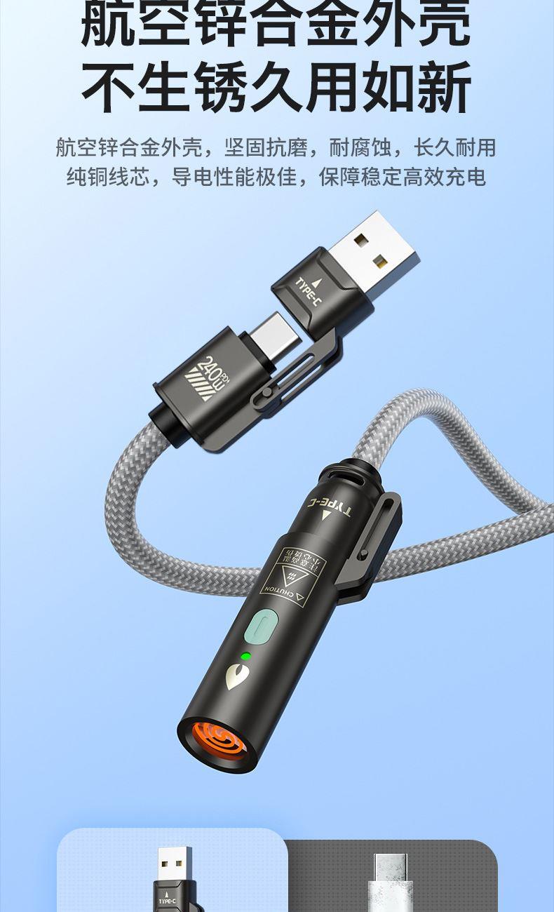 ● 鋅合金+純銅+編織,讓數(shù)據(jù)線使用壽命更長(zhǎng),不易損壞 ● 100W快充,讓您的手機(jī)可以短時(shí)間內(nèi)充滿電 ● 四合一的接口,配合多種機(jī)型使用 ● 掛脖,斜背,解放雙手,讓你轉(zhuǎn)松出行,攜帶方便 ● 點(diǎn)煙器功能 ,接充電寶 ,可點(diǎn)燃紙巾 ,可戶外野餐點(diǎn)火