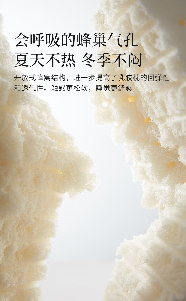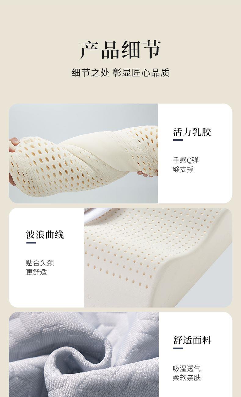 特性優(yōu)勢:乳膠枕質(zhì)地柔軟高彈性,觸感舒適,人體工學(xué)設(shè)計(jì),有效貼合頭部、頸部提供均勻支撐。內(nèi)部具有豐富的蜂窩裝氣孔結(jié)構(gòu),促進(jìn)空氣流通,使內(nèi)部保持干爽,減少細(xì)菌和蟲滋生。